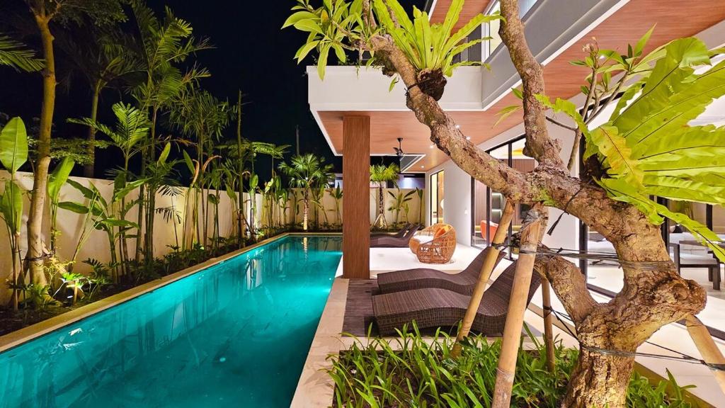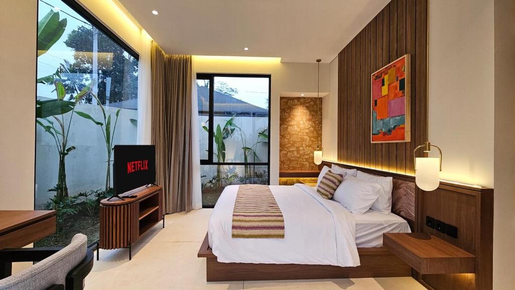 Geya Villa Ubud dengan 3 kamar tidur bergaya minimalis modern dengan jendela-jendela besar. Menawarkan akses cepat ke tempat-tempat wisata seperti Galeri Topeng IB Oka, yang hanya berjarak 6 menit jalan kaki.