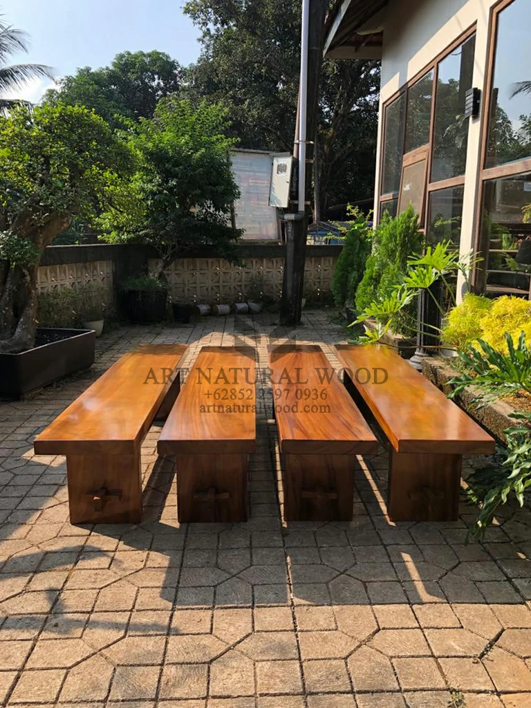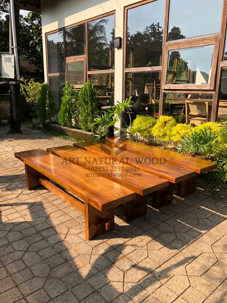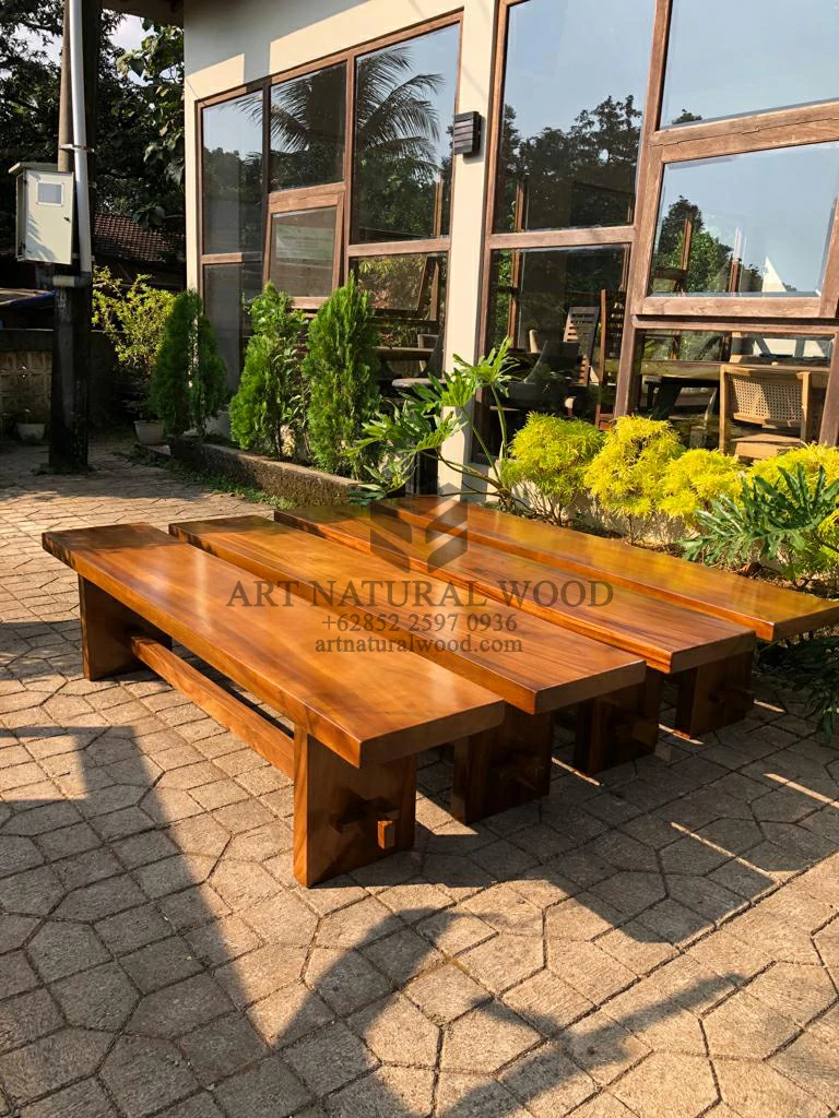 Bangku kayu panjang minimalis trembesi solid ini menggunakan bahan baku Kayu Trembesi utuh (Suar Wood) dan ditambah dengan konstruksi/purus. Produk-produk dari Art Natural Wood dekerjakan oleh para profesional dibidang furniture dari Jepara. Dikerjakan dengan teliti dan cermat sehingga furniture ini menjadi produk yang kokoh, kuat dan memiliki fungsi guna.