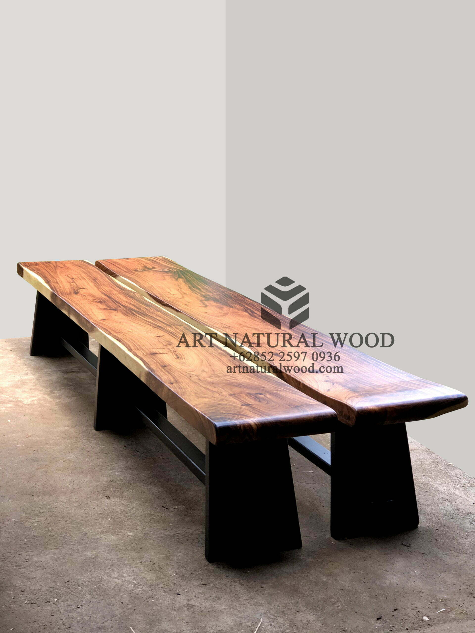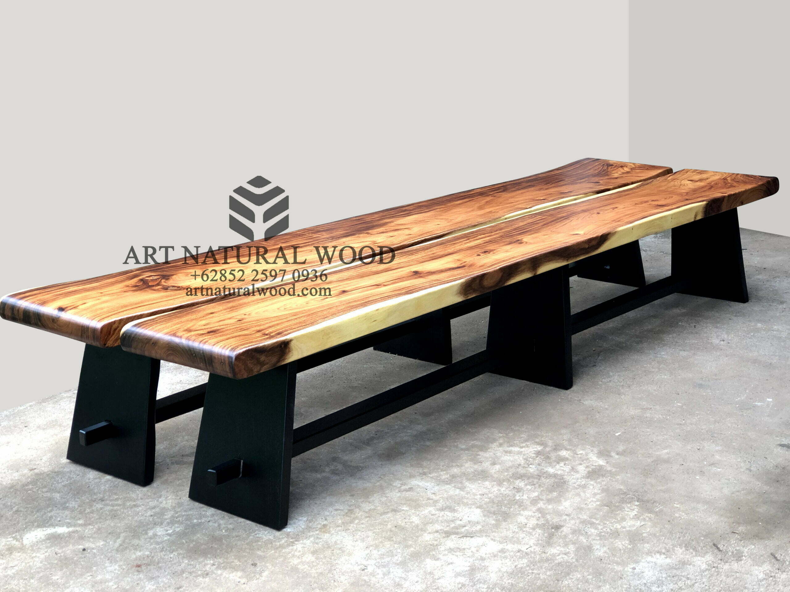 Bangku kayu panjang ini menggunakan bahan baku Kayu Trembesi utuh (Suar Wood) dan ditambah dengan konstruksi/purus. Produk-produk dari Art Natural Wood dekerjakan oleh para profesional dibidang furniture dari Jepara. Dikerjakan dengan teliti dan cermat sehingga furniture ini menjadi produk yang kokoh, kuat dan memiliki fungsi guna.