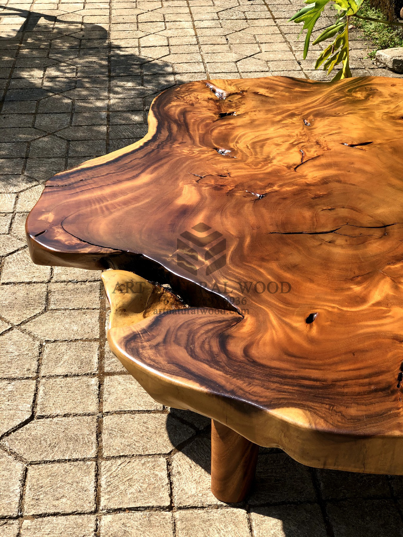 Coffee table kayu antik ini menggunakan bahan baku akar Kayu Trembesi utuh (Suar Wood), dan ditambah dengan konstruksi/purus. Produk-produk dari Art Natural Wood dekerjakan oleh para profesional dibidang furniture dari Jepara. Dikerjakan dengan teliti dan cermat sehingga furniture ini menjadi produk yang kokoh, kuat dan memiliki fungsi guna.