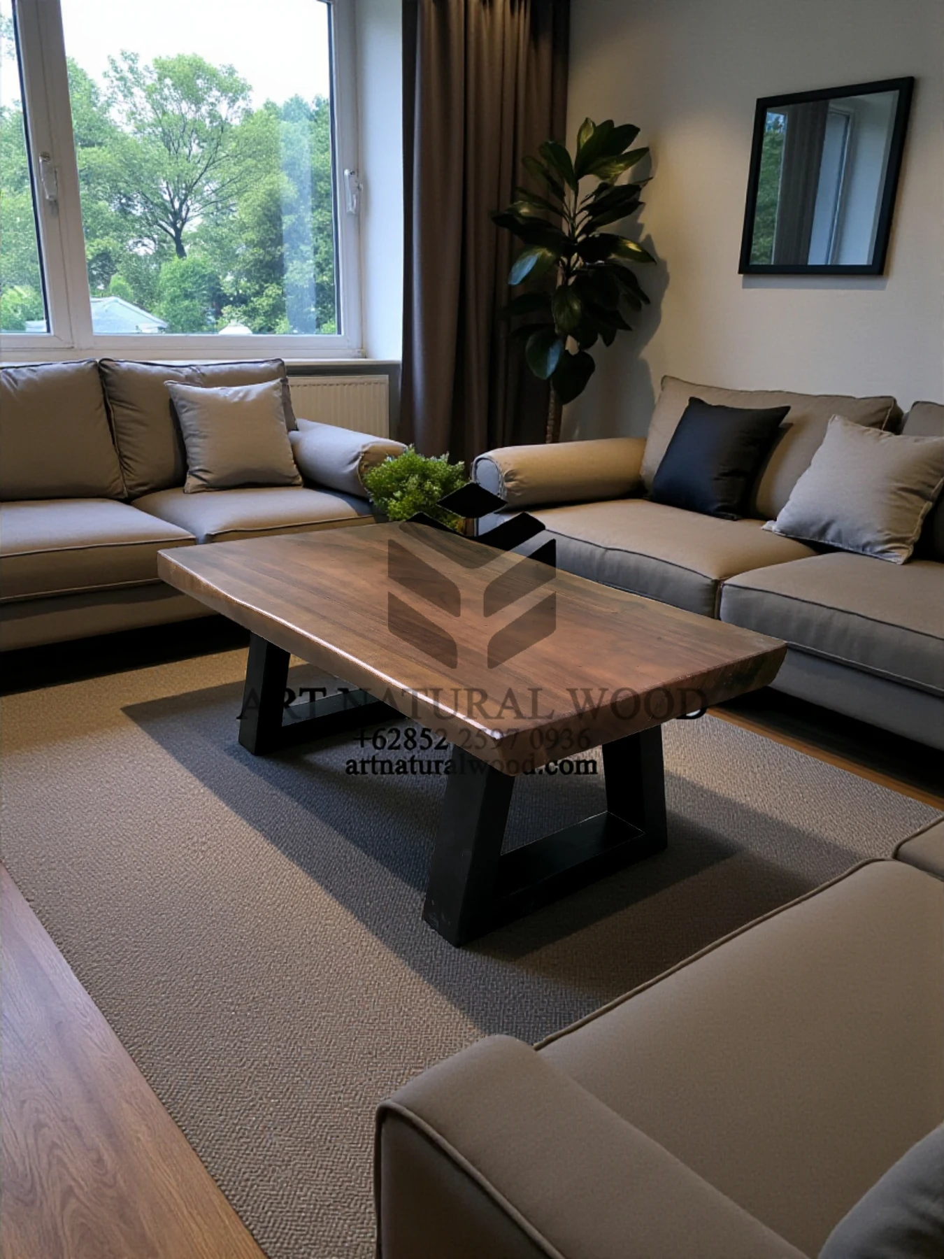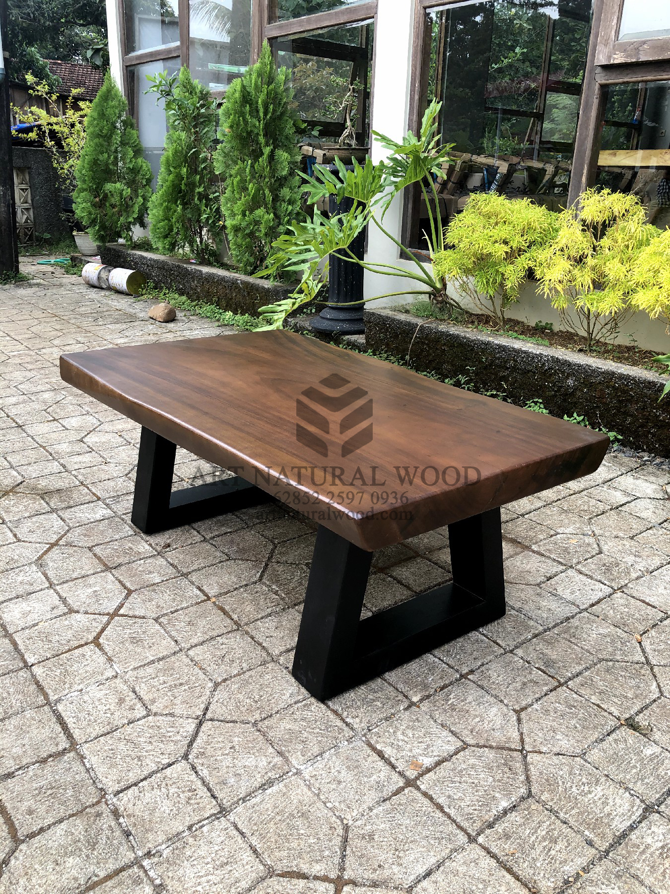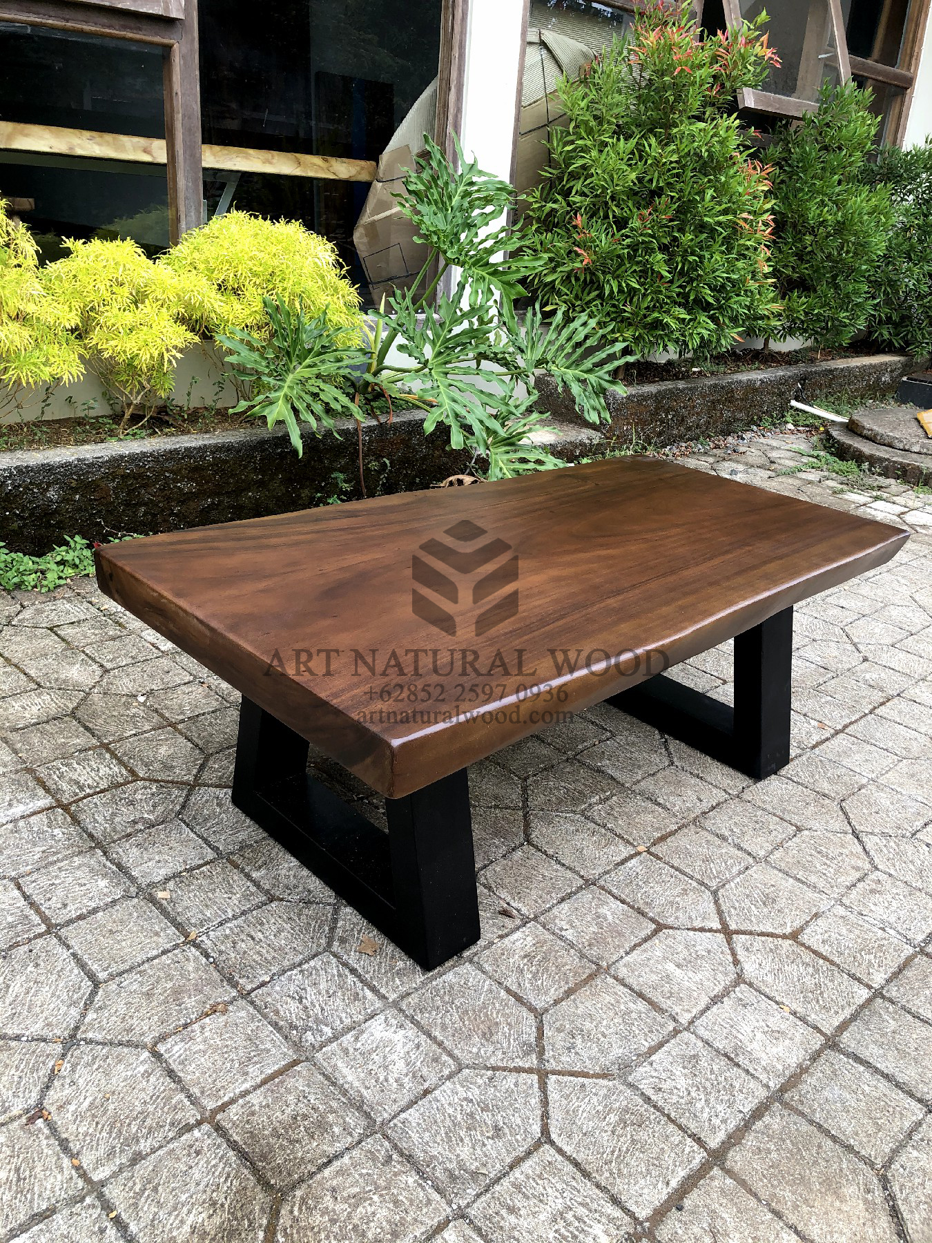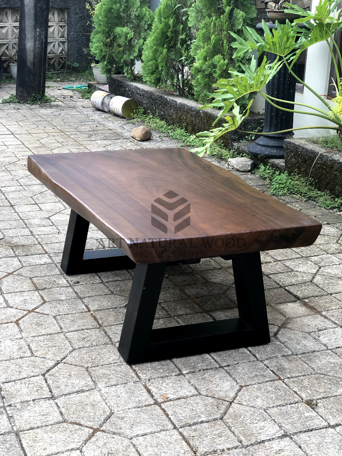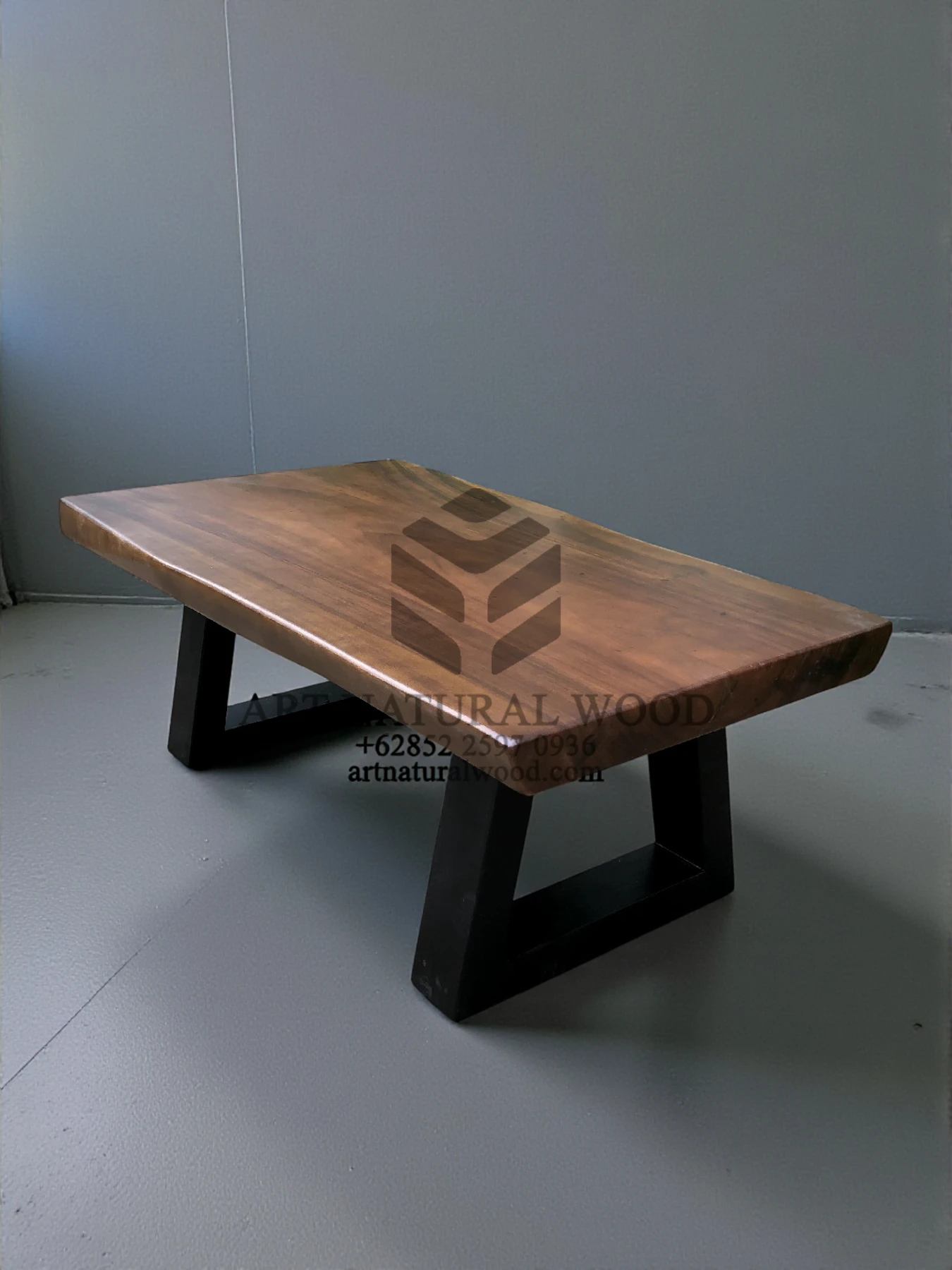 Coffee table minimalis ini menggunakan bahan baku Kayu Trembesi utuh (Suar Wood), dan ditambah dengan konstruksi/purus. Produk-produk dari Art Natural Wood dekerjakan oleh para profesional dibidang furniture dari Jepara. Dikerjakan dengan teliti dan cermat sehingga furniture ini menjadi produk yang kokoh, kuat dan memiliki fungsi guna.