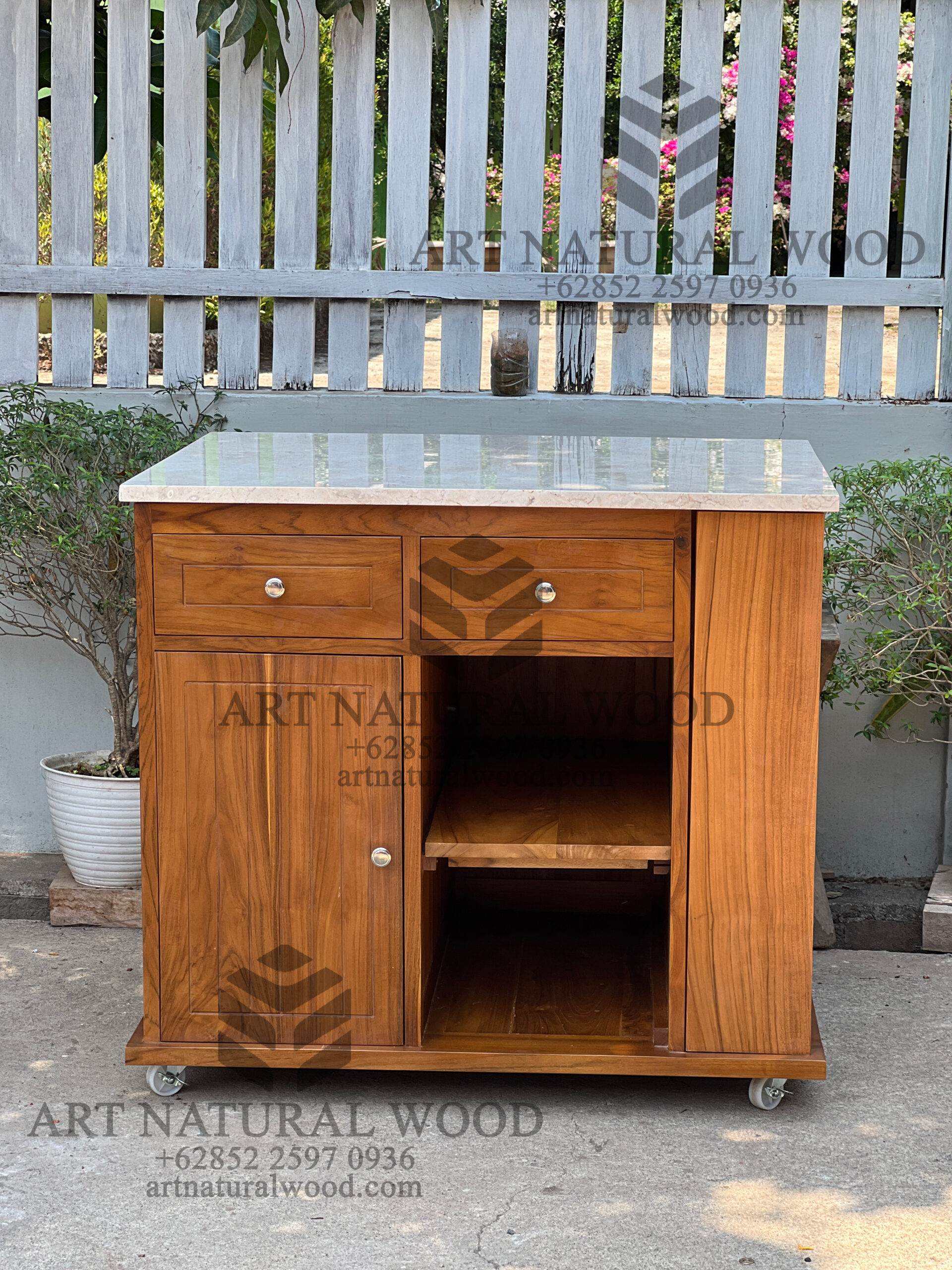 KITCHEN TROLLEY MINIMALIS KAYU JATI SOLID