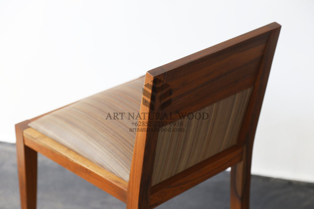 Kursi makan ini diproduksi dengan desain yang simpel dan unik, kursi cafe ini memiliki nilai estetik tersendiri, kemudian dengan menggunakan bahan baku berupa full kayu solid dan bantalan busa membuat kursi cafe minimalis ini memiliki daya tarik tambahan dan tentunya memiliki kekuatan yang tidak diragukan lagi, dengan kata lain furniture memiliki kualitas yang sangat baik. Tentunya kursi makan ini dapat bertahan dalam waktu yang lama.