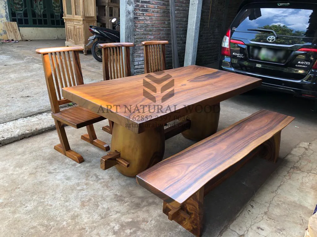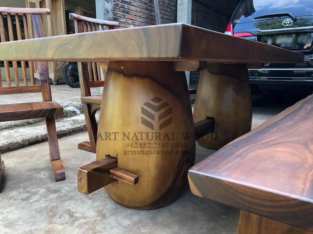 Meja antik kayu trembesi ini menggunakan bahan baku Kayu Trembesi utuh (Suar Wood) dan ditambah dengan konstruksi/purus. Produk-produk dari Art Natural Wood dekerjakan oleh para profesional dibidang furniture dari Jepara. Dikerjakan dengan teliti dan cermat sehingga furniture ini menjadi produk yang kokoh, kuat dan memiliki fungsi guna.