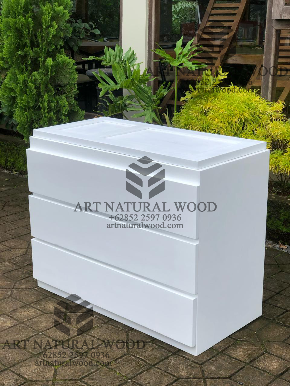 Pertama kami sampaikan bahwa Art Natural Wood melayani custom finishing untuk para konsumen, sehingga konsumen berhak menentukan warna finishing produk yang dikehendaki. Untuk baby tafel ini kami menggunakan finishing duco putih. Finishing natural sangat cocok bila dipadankan dengan produk-produk yang terbuat dari kayu mahoni solid (MahoghaniWood).