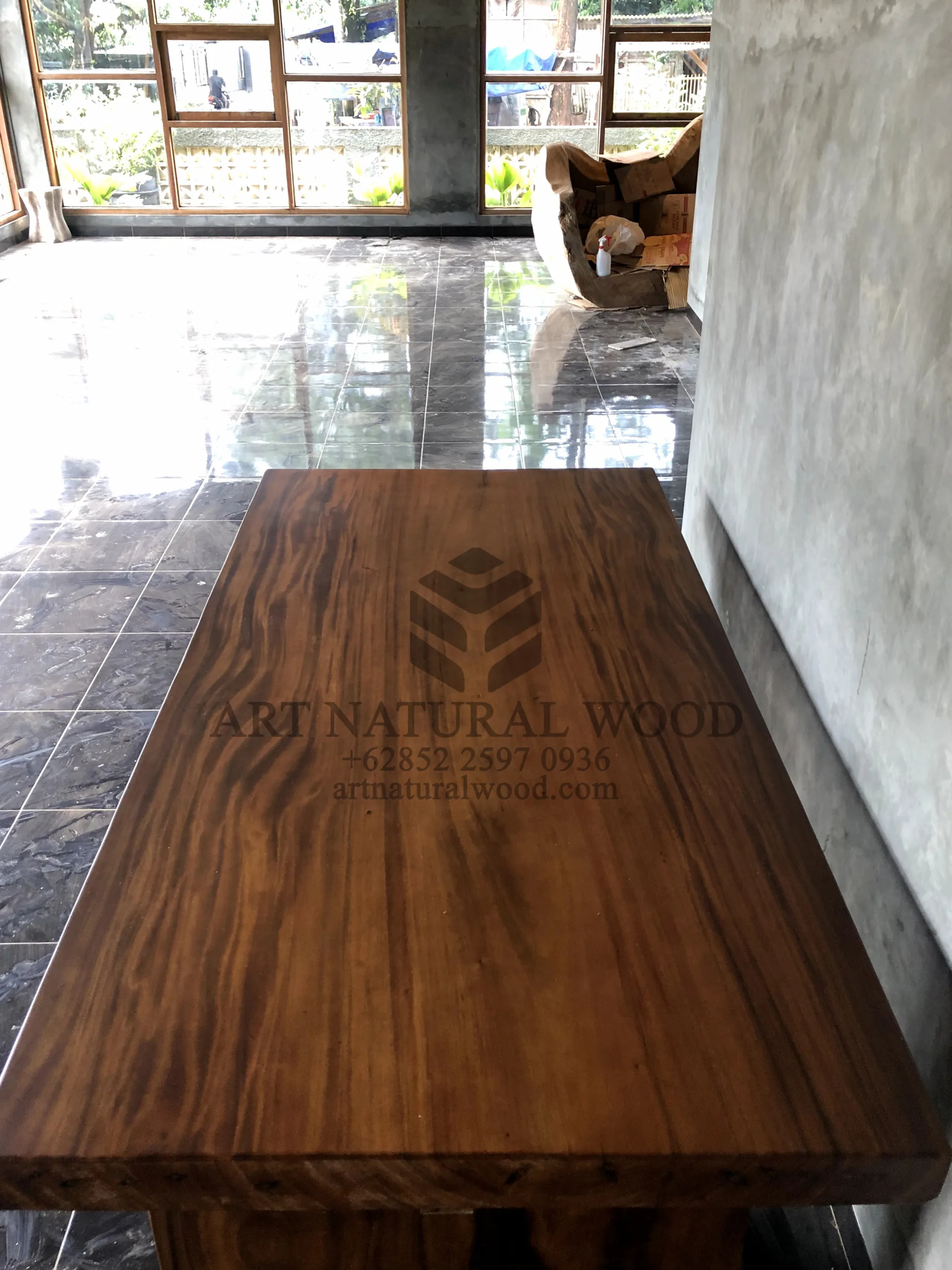 Pertama kami sampaikan bahwa Art Natural Wood melayani custom finishing untuk para konsumen sehingga konsumen berhak menentukan warna finishing produk yang dikehendaki. Untuk produk ini kami menggunakan finishing natural. Finishing natural sangat cocok bila dipadankan dengan produk-produk yang terbuat dari kayu trembesi solid (Suar Wood), Karena tidak menghilangkan kesan atau motif urat kayu.