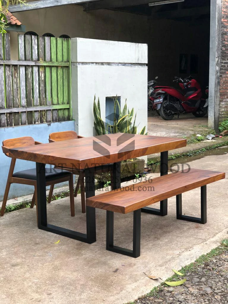 Meja Cafe Minimalis Kayu Trembesi Besar