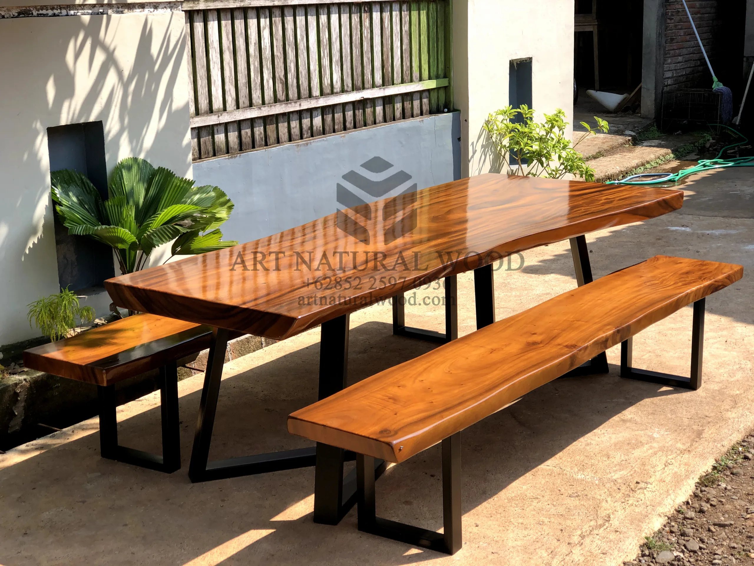 Meja industrial kayu trembesi solid ini menggunakan bahan baku Kayu Trembesi utuh (Suar Wood) dan ditambah dengan konstruksi/purus. Produk-produk dari Art Natural Wood dekerjakan oleh para profesional dibidang furniture dari Jepara. Dikerjakan dengan teliti dan cermat sehingga furniture ini menjadi produk yang kokoh, kuat dan memiliki fungsi guna.