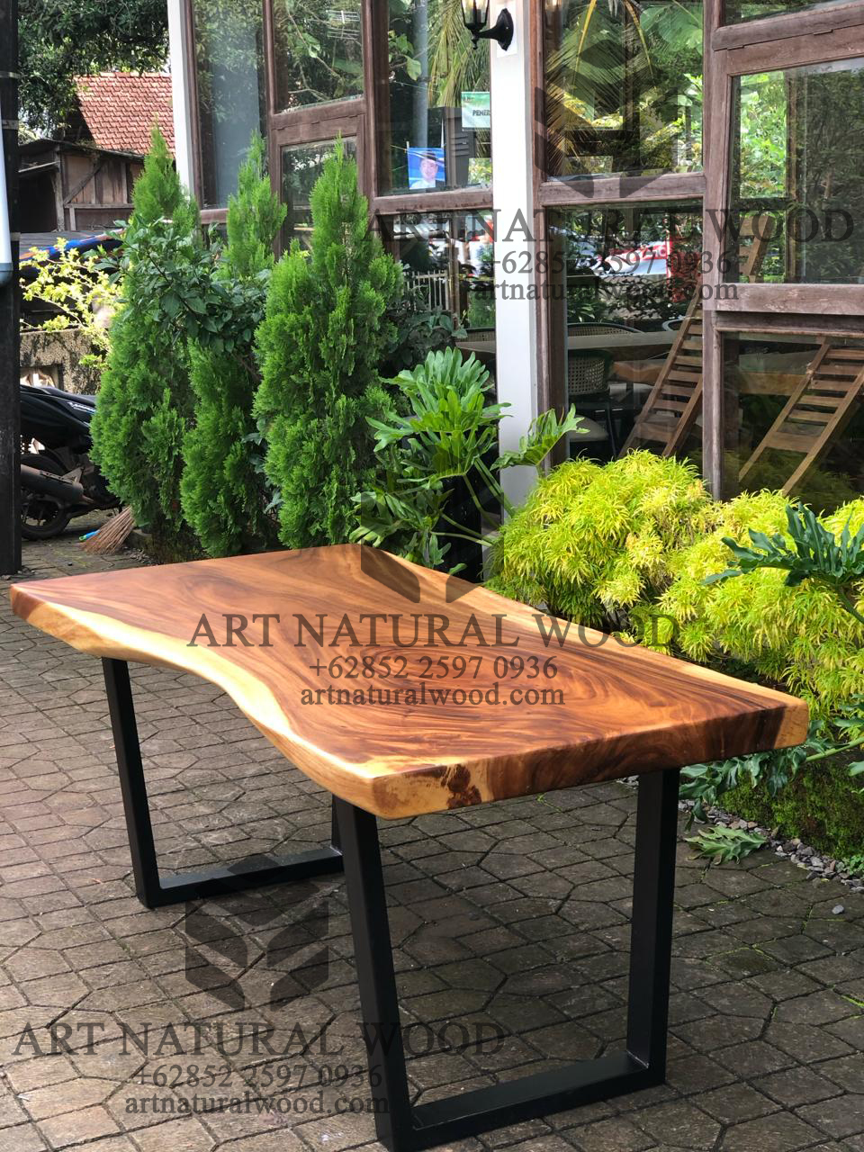 MEJA KAYU KAKI BESI TREMBESI SOLID