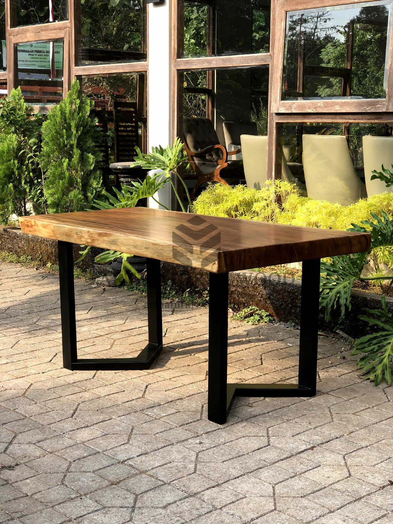Finishing Produk Meja Kayu Utuh Trembesi Minimalis Kaki Besi