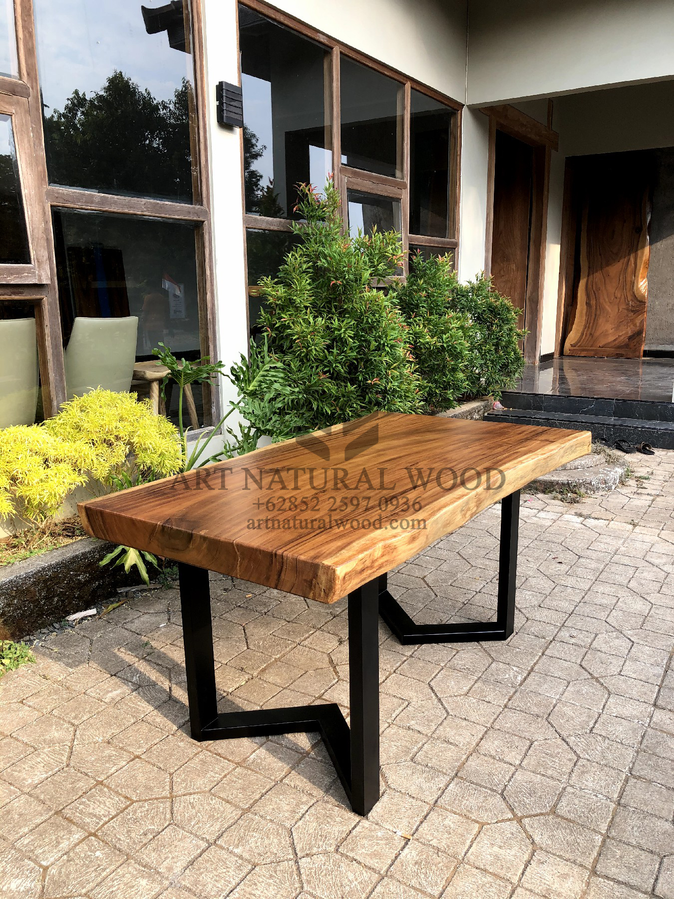 Meja kayu utuh ini menggunakan bahan baku Kayu Trembesi utuh (Suar Wood) dan ditambah dengan konstruksi/purus. Produk-produk dari Art Natural Wood dekerjakan oleh para profesional dibidang furniture dari Jepara. Dikerjakan dengan teliti dan cermat sehingga furniture ini menjadi produk yang kokoh, kuat dan memiliki fungsi guna.