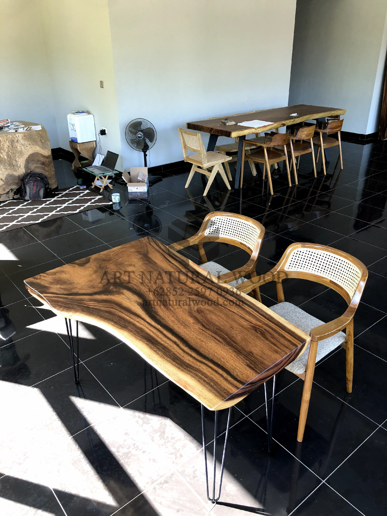 Meja kerja minimalis ini menggunakan bahan baku Kayu Trembesi utuh (Suar Wood) dan ditambah dengan konstruksi/purus. Produk-produk dari Art Natural Wood dekerjakan oleh para profesional dibidang furniture dari Jepara. Dikerjakan dengan teliti dan cermat sehingga produk ini menjadi produk yang kokoh, kuat dan memiliki fungsi guna.