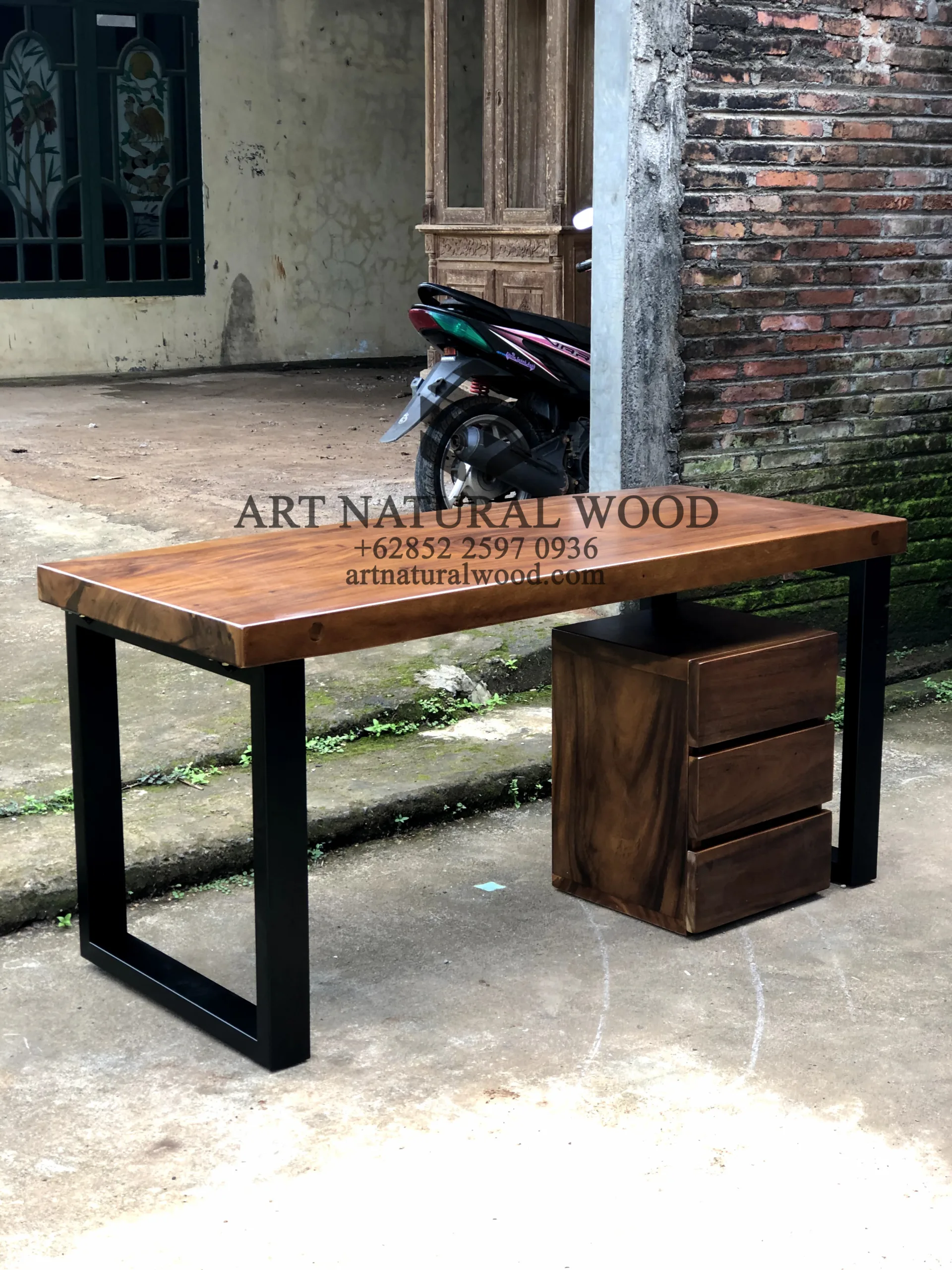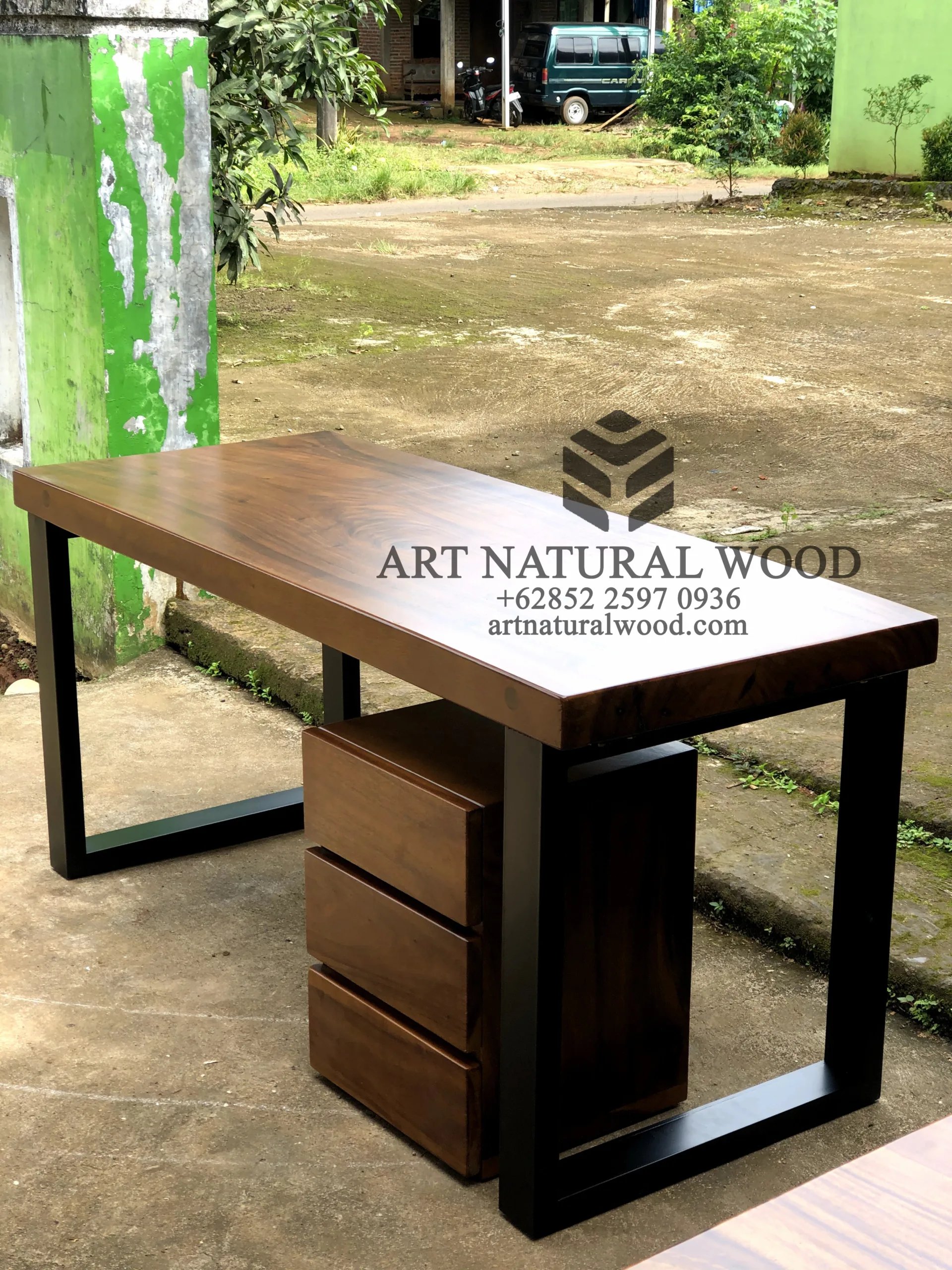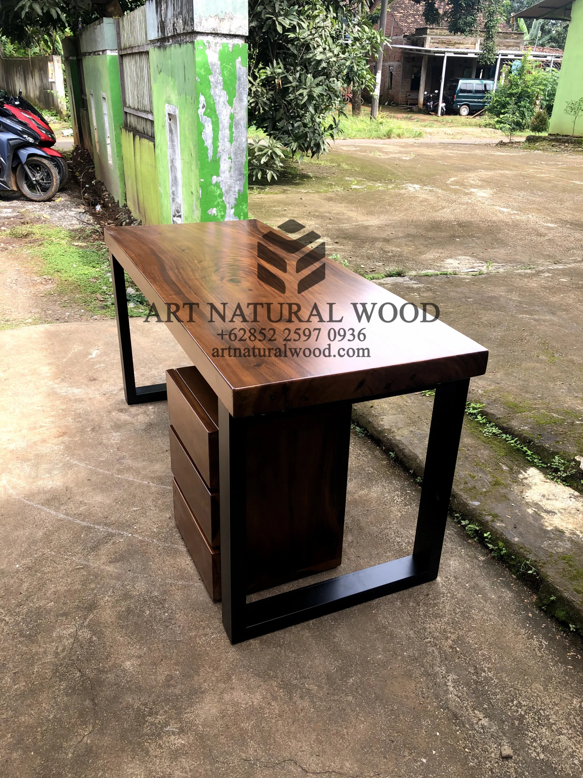 Meja kerja minimalis modern menggunakan bahan baku Kayu Trembesi utuh (Suar Wood) dan ditambah dengan konstruksi/purus. Produk-produk dari Art Natural Wood dekerjakan oleh para profesional dibidang furniture dari Jepara. Dikerjakan dengan teliti dan cermat sehingga produk ini menjadi produk yang kokoh, kuat dan memiliki fungsi guna.