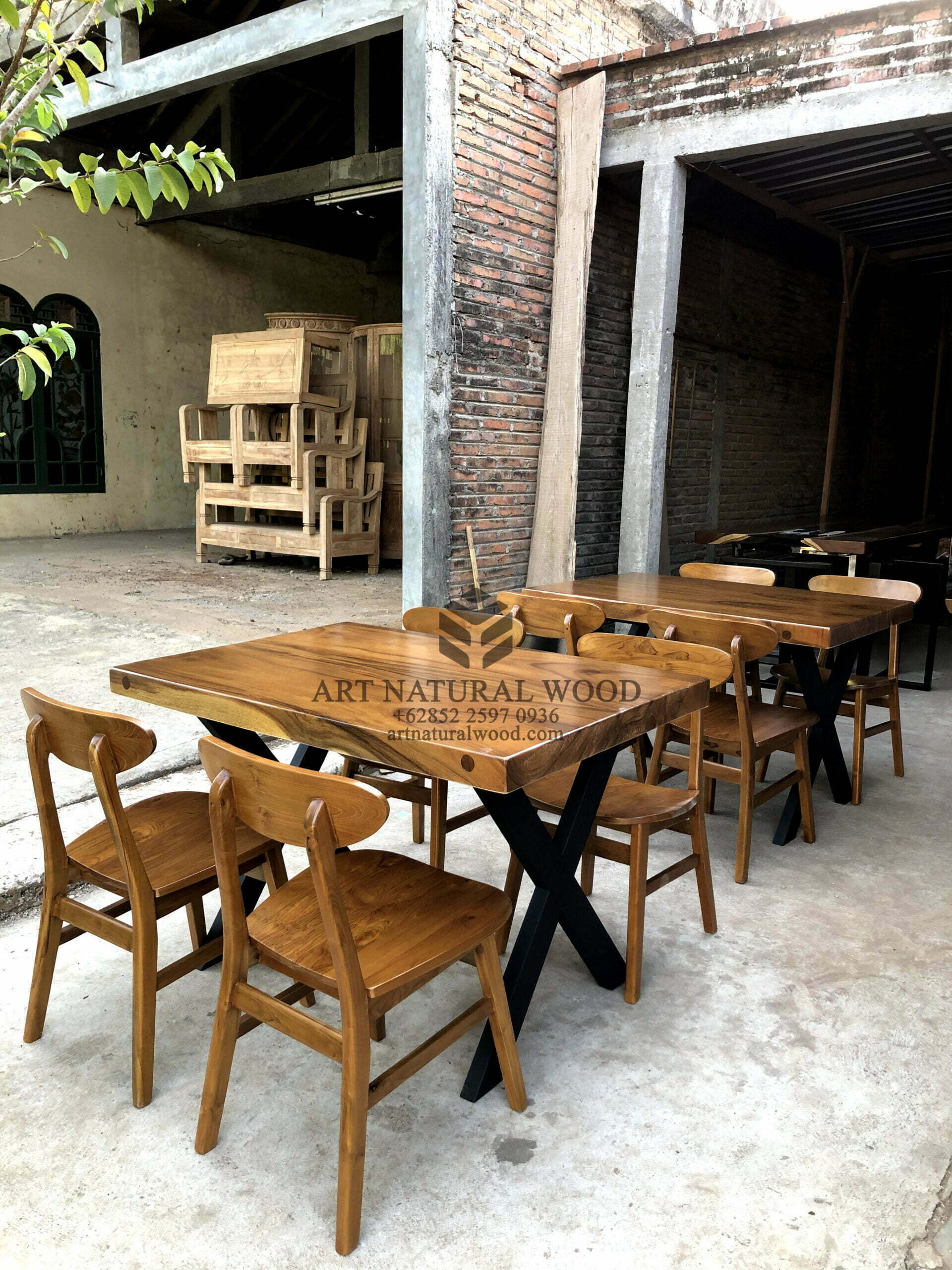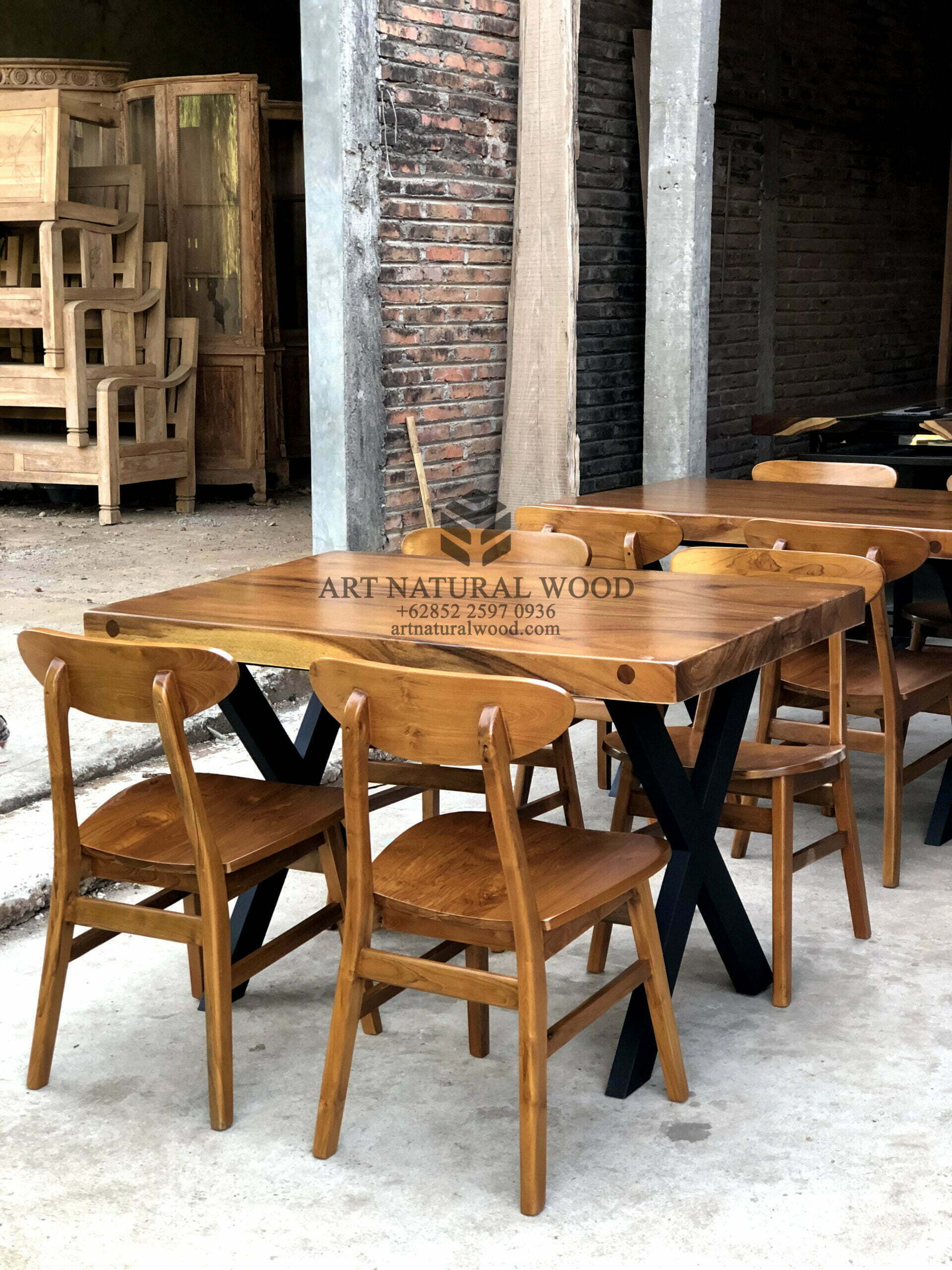 MEJA MAKAN KAKI BESI KAYU TREMBESI