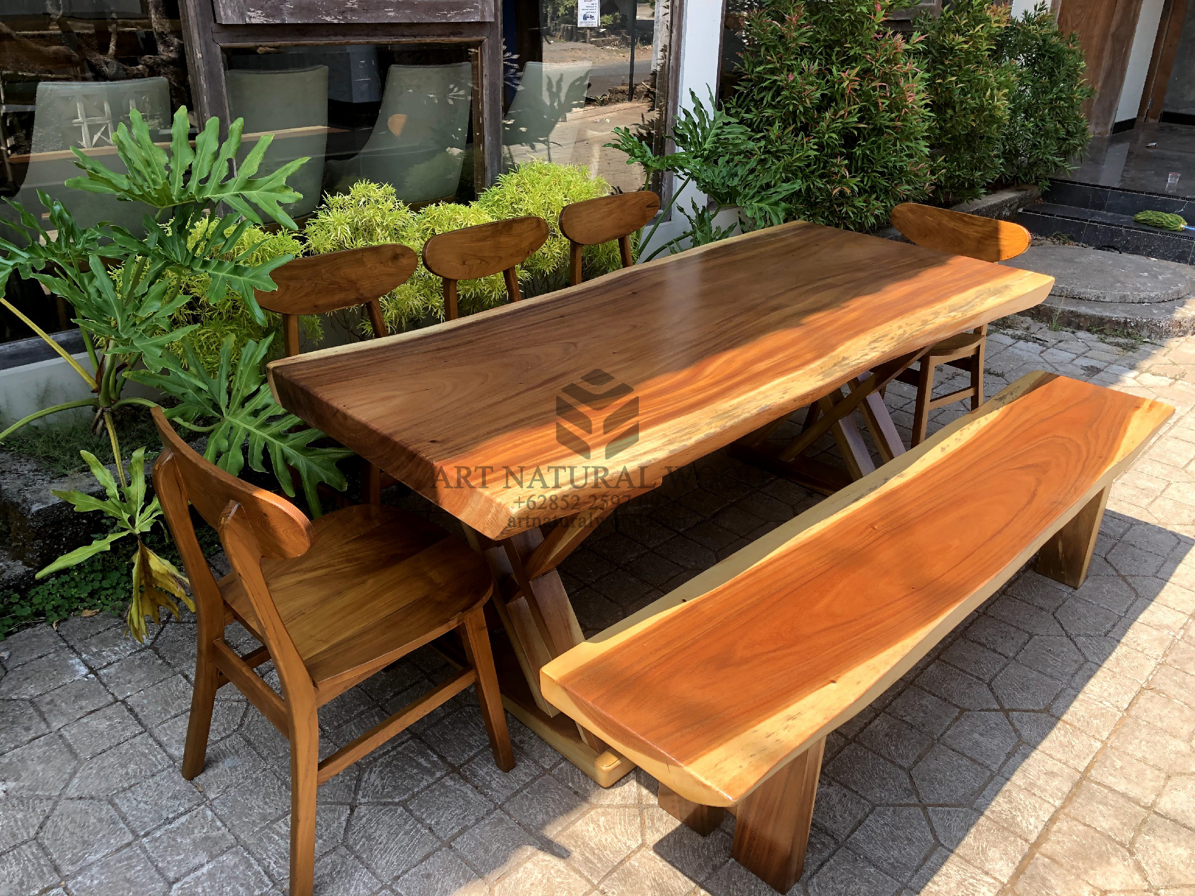 Meja Makan Kayu Trembesi 5 Kursi 1 Bangku