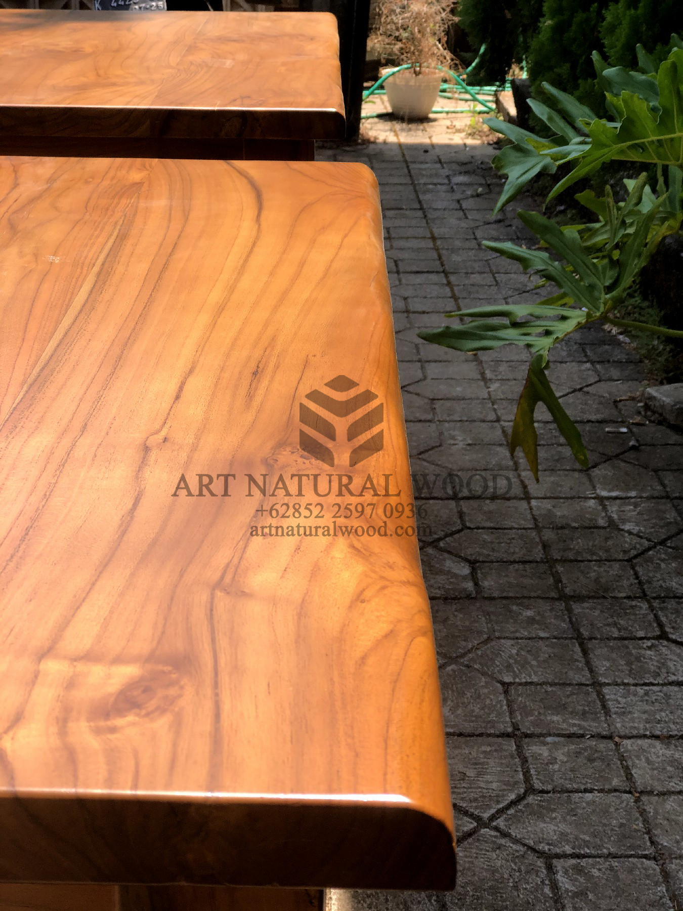 Pertama kami sampaikan bahwa Art Natural Wood melayani custom finishing untuk para konsumen, sehingga konsumen berhak menentukan warna finishing produk yang dikehendaki. Untuk produk ini kami menggunakan finishing natural. Finishing natural sangat cocok bila dipadankan dengan produk-produk yang terbuat dari kayu jati solid (Teak Wood), Karena tidak menghilangkan kesan atau motif urat kayu.