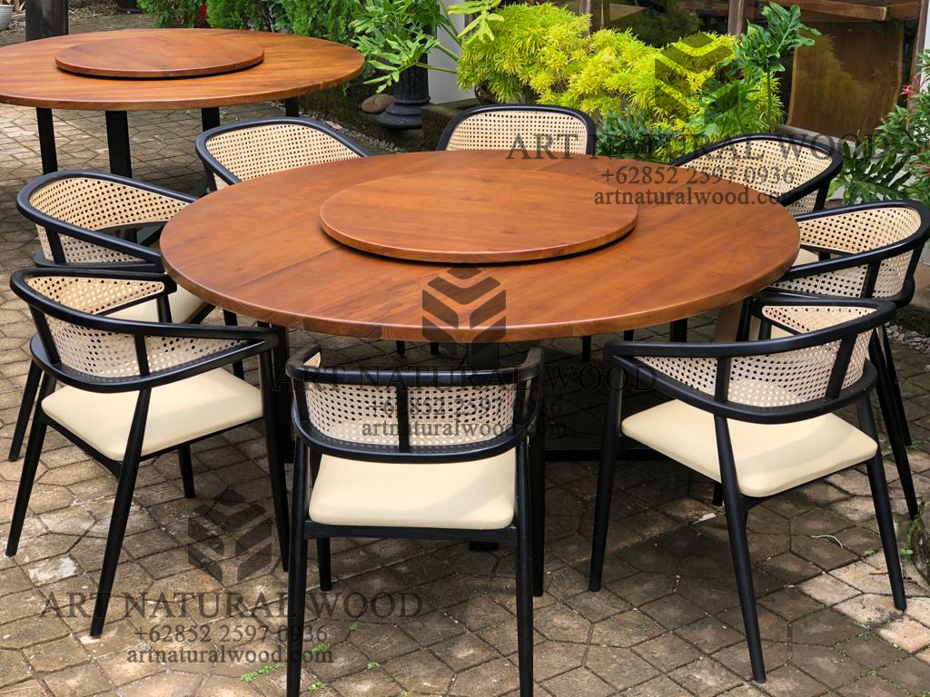 MEJA MAKAN PUTAR BULAT KAYU JATI SOLID