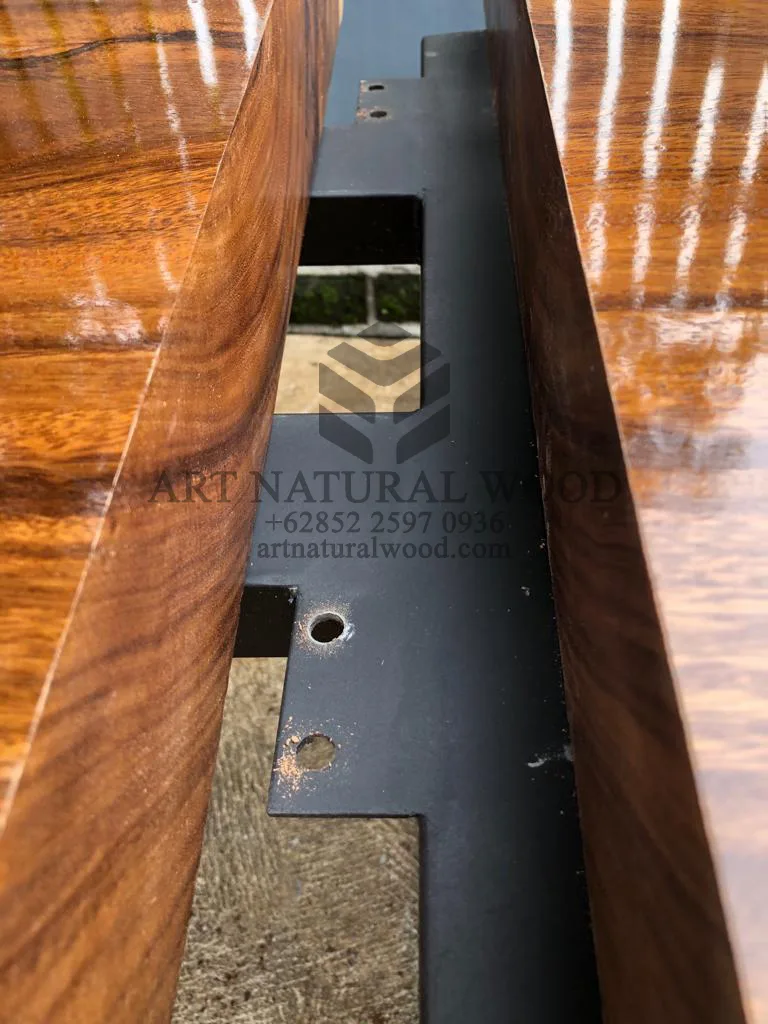 Pertama kami sampaikan bahwa Art Natural Wood melayani custom finishing untuk para konsumen, sehingga konsumen berhak menentukan warna finishing produk yang dikehendaki. Untuk produk ini kami menggunakan finishing natural. Finishing natural sangat cocok bila dipadankan dengan produk-produk yang terbuat dari kayu trembesi solid (Suar Wood), Karena tidak menghilangkan kesan atau motif urat kayu.