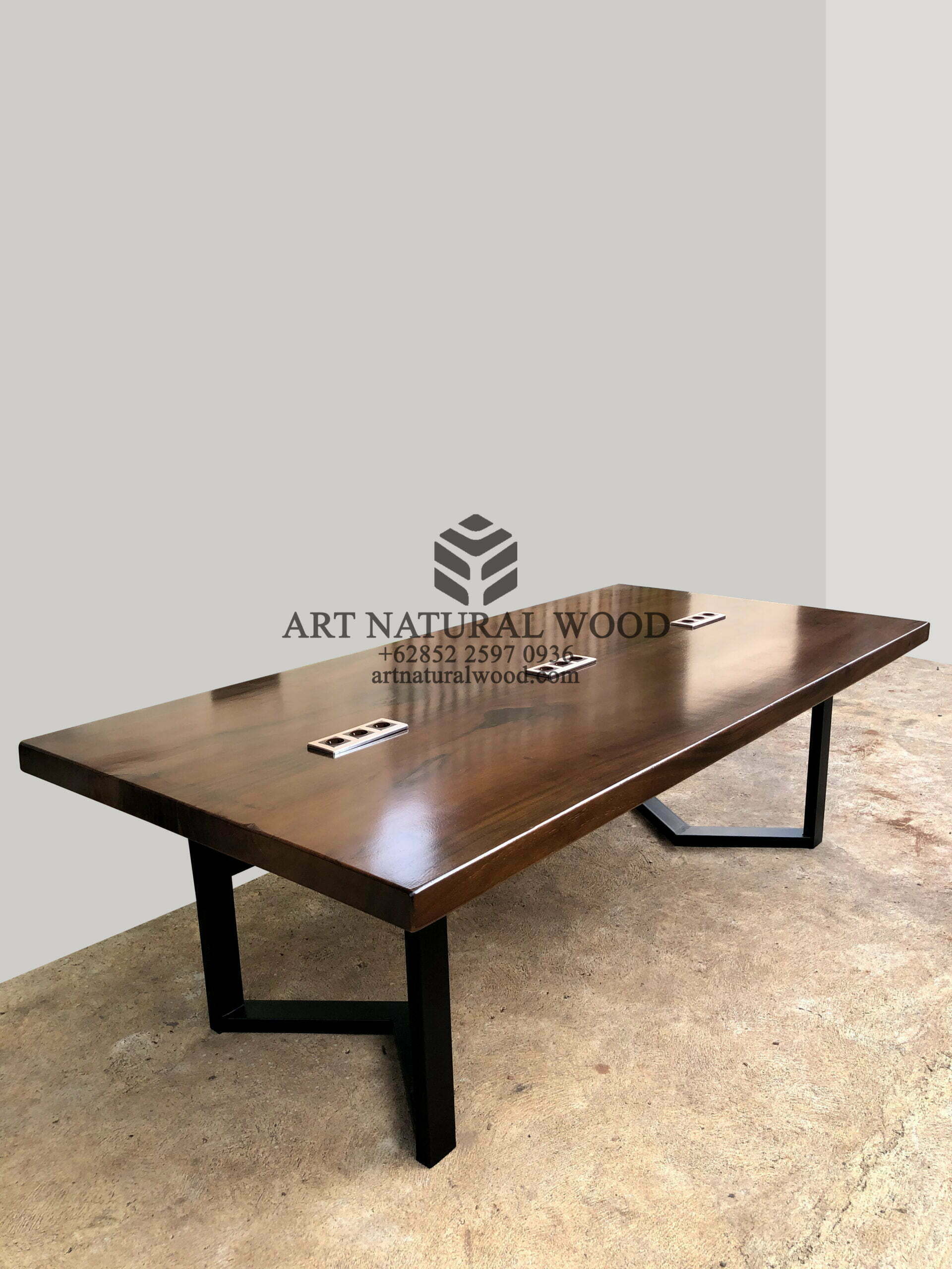 Dengan desain yang simpel dan unik, Meja meeting ini memiliki nilai estetik tersendiri, kemudian dengan menggunakan bahan baku berupa full kayu solid membuat meja meeting ini memiliki daya tarik tambahan dan tentunya memiliki kekuatan yang tidak diragukan lagi, dengan kata lain furniture memiliki kualitas yang sangat baik. Tentunya meja meeting ini dapat bertahan dalam waktu yang lama.