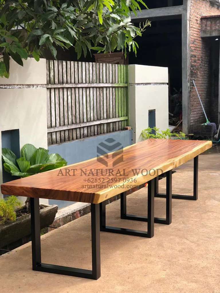 Meja rapat kayu trembesi solid ini menggunakan bahan baku Kayu Trembesi utuh (Suar Wood), ditambah dengan konstruksi/purus. Produk-produk dari Art Natural Wood dekerjakan oleh para profesional dibidang furniture dari Jepara. Dikerjakan dengan teliti dan cermat sehingga furniture ini menjadi produk yang kokoh, kuat dan memiliki fungsi guna.