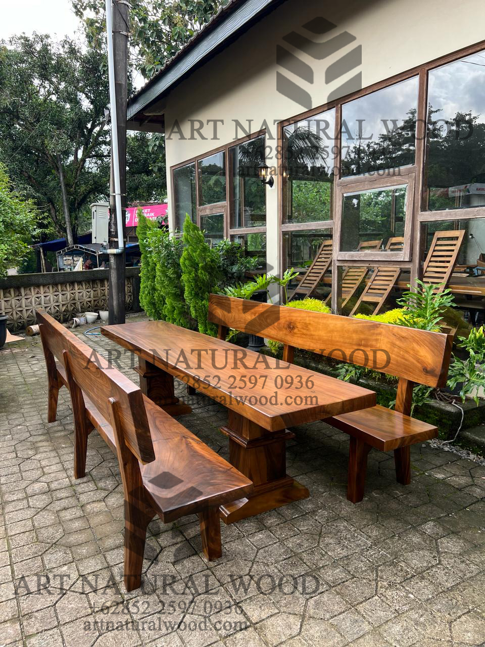 Set Meja Bangku Panjang Unik Kayu Trembesi Solid