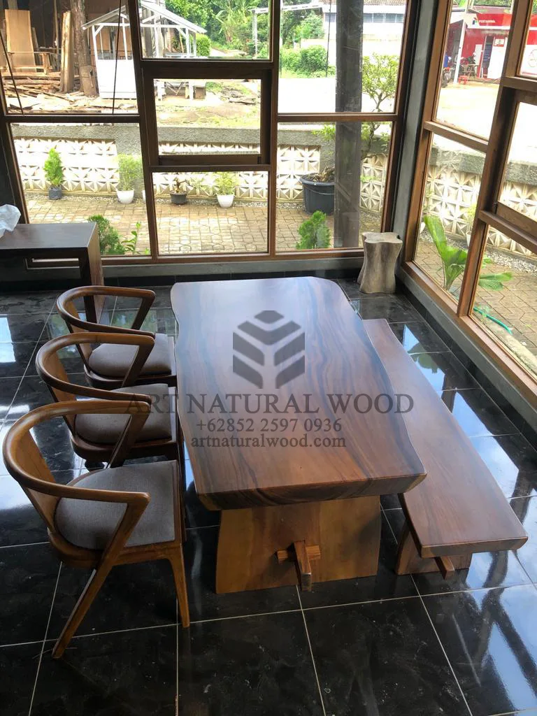 Set Meja Makan Alami Kayu Trembesi