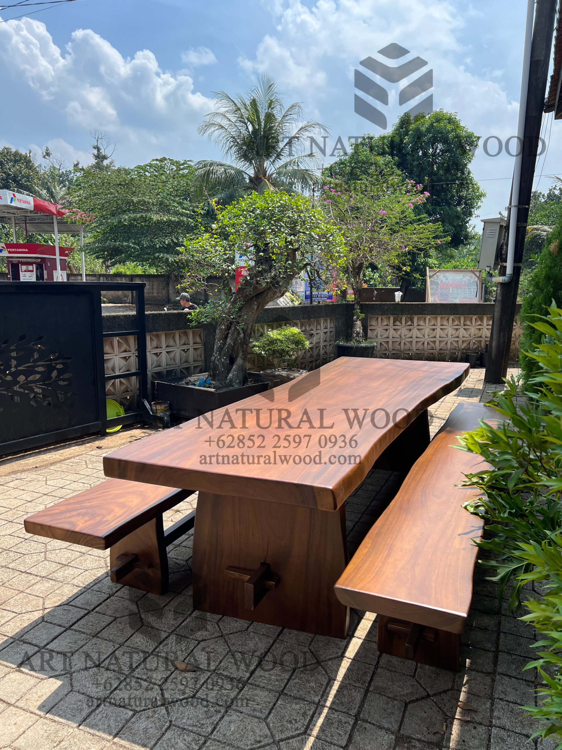 Set Meja Makan Kayu Trembesi 2 Bangku
