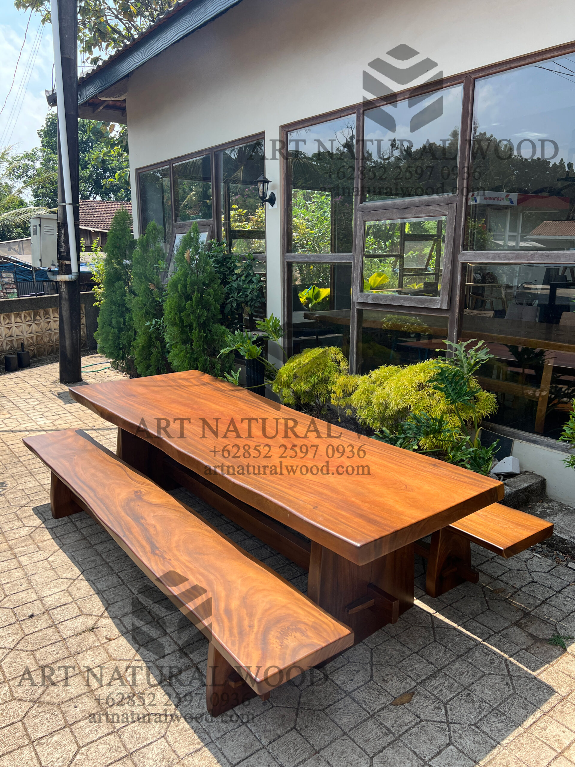 Konstruksi Set Meja Makan Kayu Trembesi 2 Bangku