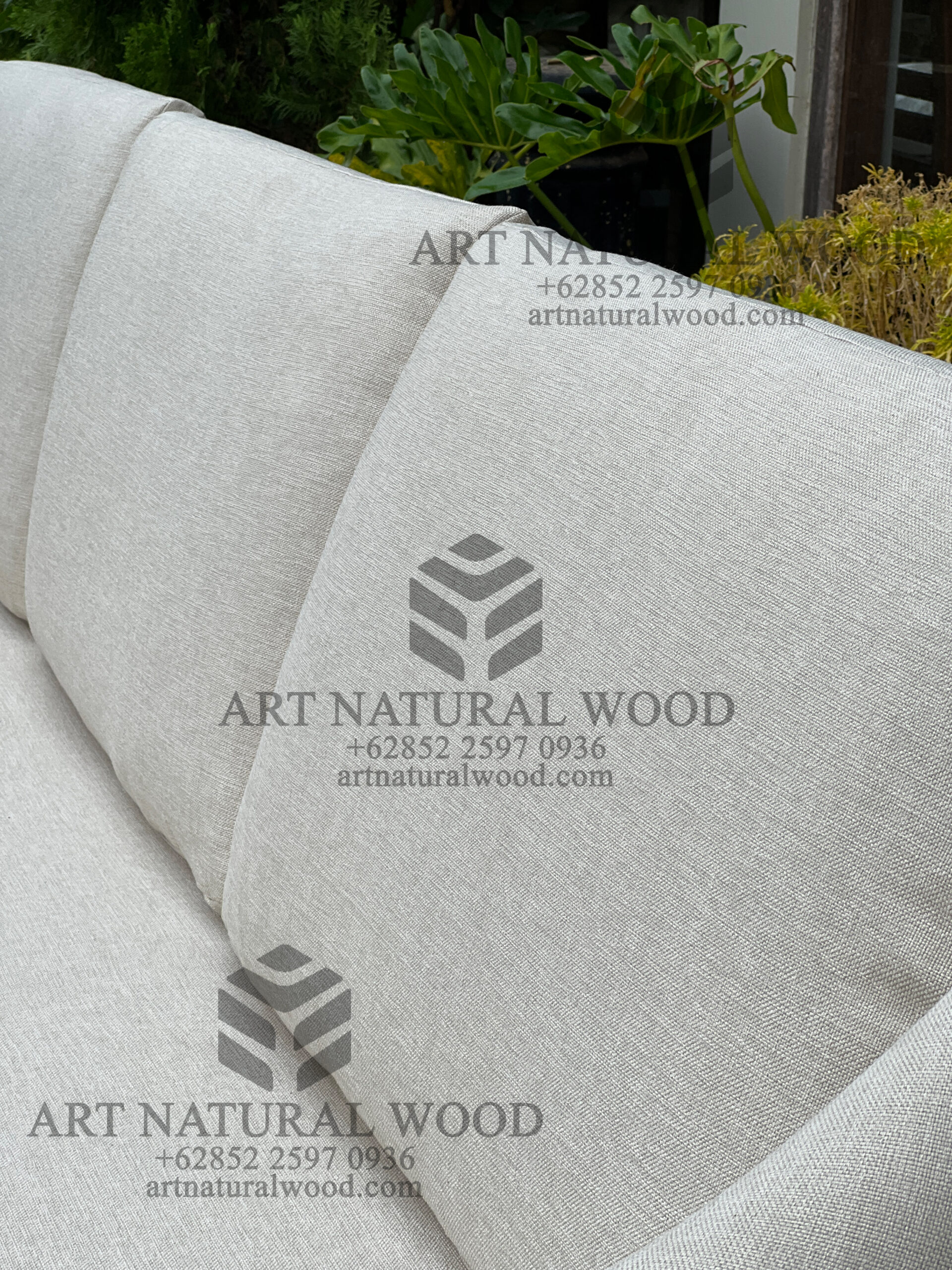 Sofa 3 dudukan minimalis ini menggunakan bahan baku rangka Kayu Jati solid (Teak Wood), dan ditambah dengan konstruksi/purus. Produk-produk dari Art Natural Wood dekerjakan oleh para profesional dibidang furniture dari Jepara. Dikerjakan dengan teliti dan cermat sehingga furniture ini menjadi produk yang kokoh, kuat dan memiliki fungsi guna.