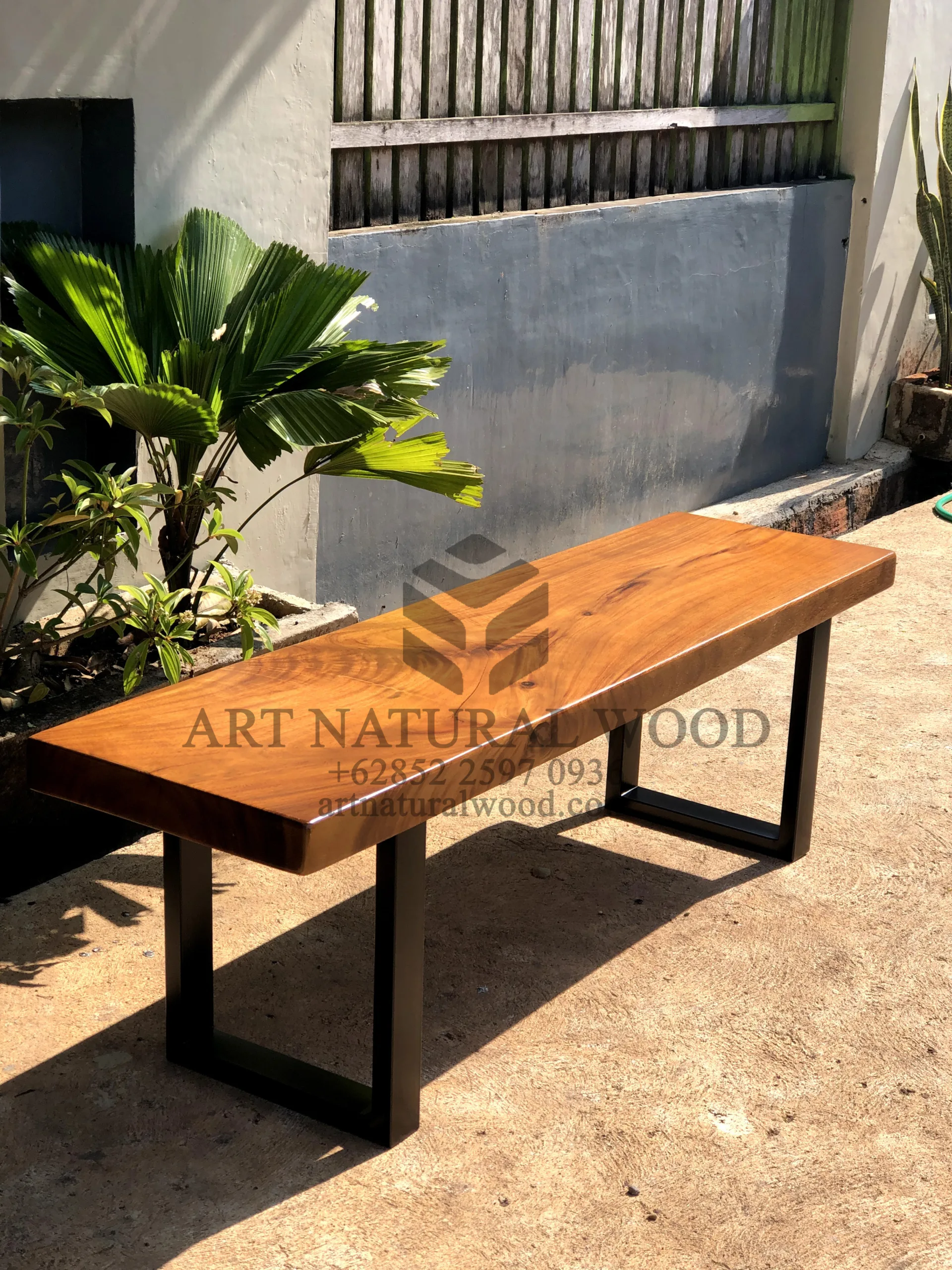 Bangku minimalis kayu trembesi solid ini menggunakan bahan baku Kayu Trembesi utuh (Suar Wood) dan ditambah dengan konstruksi/purus. Produk-produk dari Art Natural Wood dekerjakan oleh para profesional dibidang furniture dari Jepara. Dikerjakan dengan teliti dan cermat sehingga furniture ini menjadi produk yang kokoh, kuat dan memiliki fungsi guna.