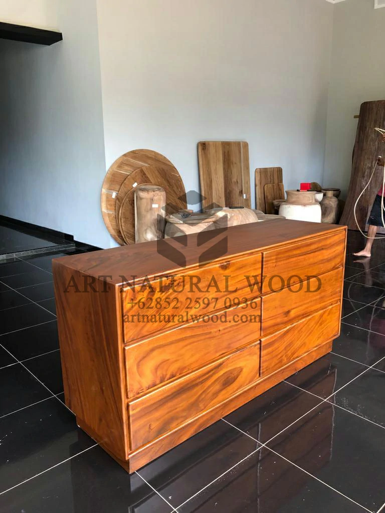 Bufet laci minimalis kayu trembesi ini menggunakan bahan baku Kayu Trembesi utuh (Suar Wood) dan ditambah dengan konstruksi/purus. Produk-produk dari Art Natural Wood dekerjakan oleh para profesional dibidang furniture dari Jepara. Dikerjakan dengan teliti dan cermat sehingga furniture ini menjadi produk yang kokoh, kuat dan memiliki fungsi guna.