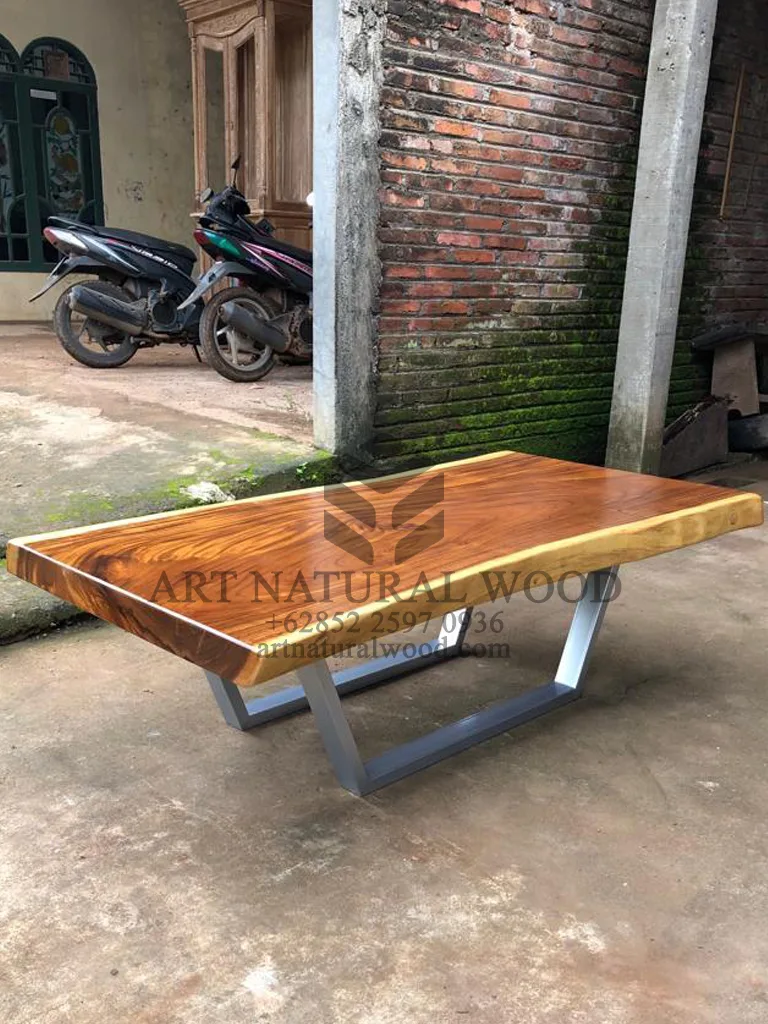 Coffee table kaki stainless ini menggunakan bahan baku Kayu Trembesi utuh (Suar Wood), dan ditambah dengan konstruksi/purus. Produk-produk dari Art Natural Wood dekerjakan oleh para profesional dibidang furniture dari Jepara. Dikerjakan dengan teliti dan cermat sehingga furniture ini menjadi produk yang kokoh, kuat dan memiliki fungsi guna.