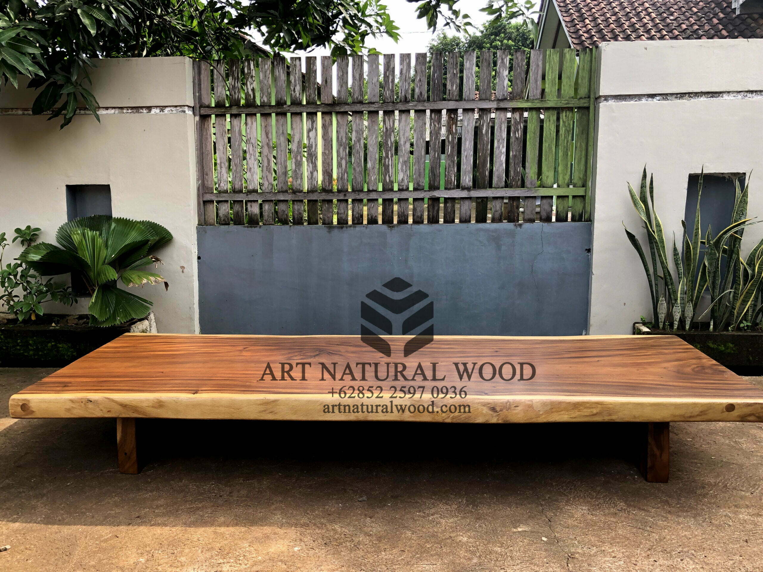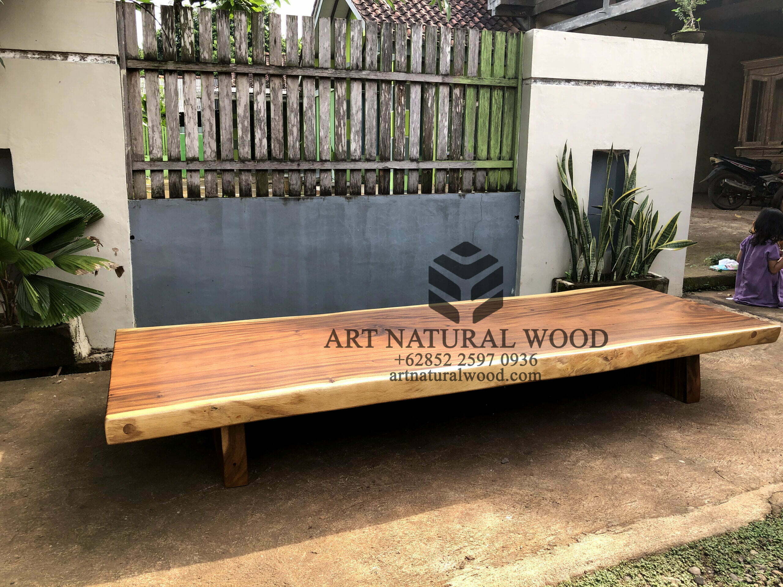 Meja kayu besar ini menggunakan bahan baku Kayu Trembesi utuh (Suar Wood), dan ditambah dengan konstruksi/purus. Produk-produk dari Art Natural Wood dekerjakan oleh para profesional dibidang furniture dari Jepara. Dikerjakan dengan teliti dan cermat sehingga furniture ini menjadi produk yang kokoh, kuat dan memiliki fungsi guna.