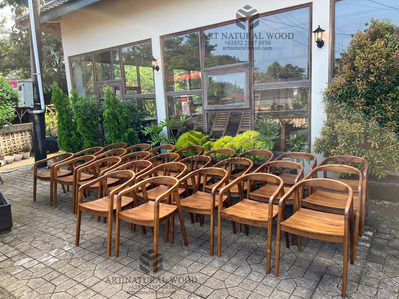 Pertama kami sampaikan bahwa Art Natural Wood melayani custom finishing untuk para konsumen, sehingga konsumen berhak menentukan warna finishing produk yang dikehendaki. Untuk kursi cafe minimalis modern ini kami menggunakan finishing natural. Finishing natural sangat cocok bila dipadankan dengan kursi cafe kayu yang terbuat dari kayu jati solid (Teak Wood), Karena tidak menghilangkan kesan atau motif urat kayu.