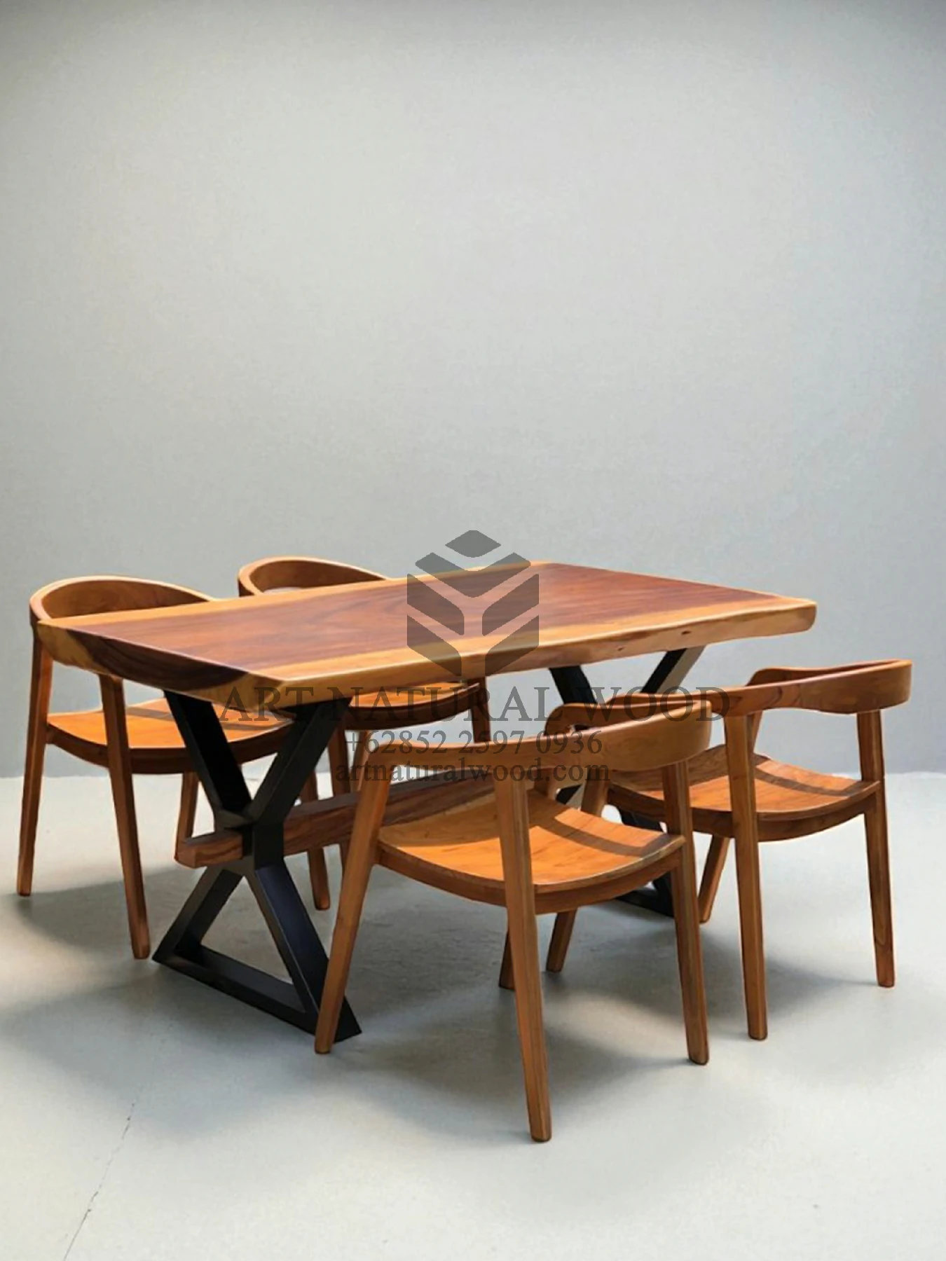 Meja Cafe 4 Kursi Kayu Trembesi Minimalis Modern