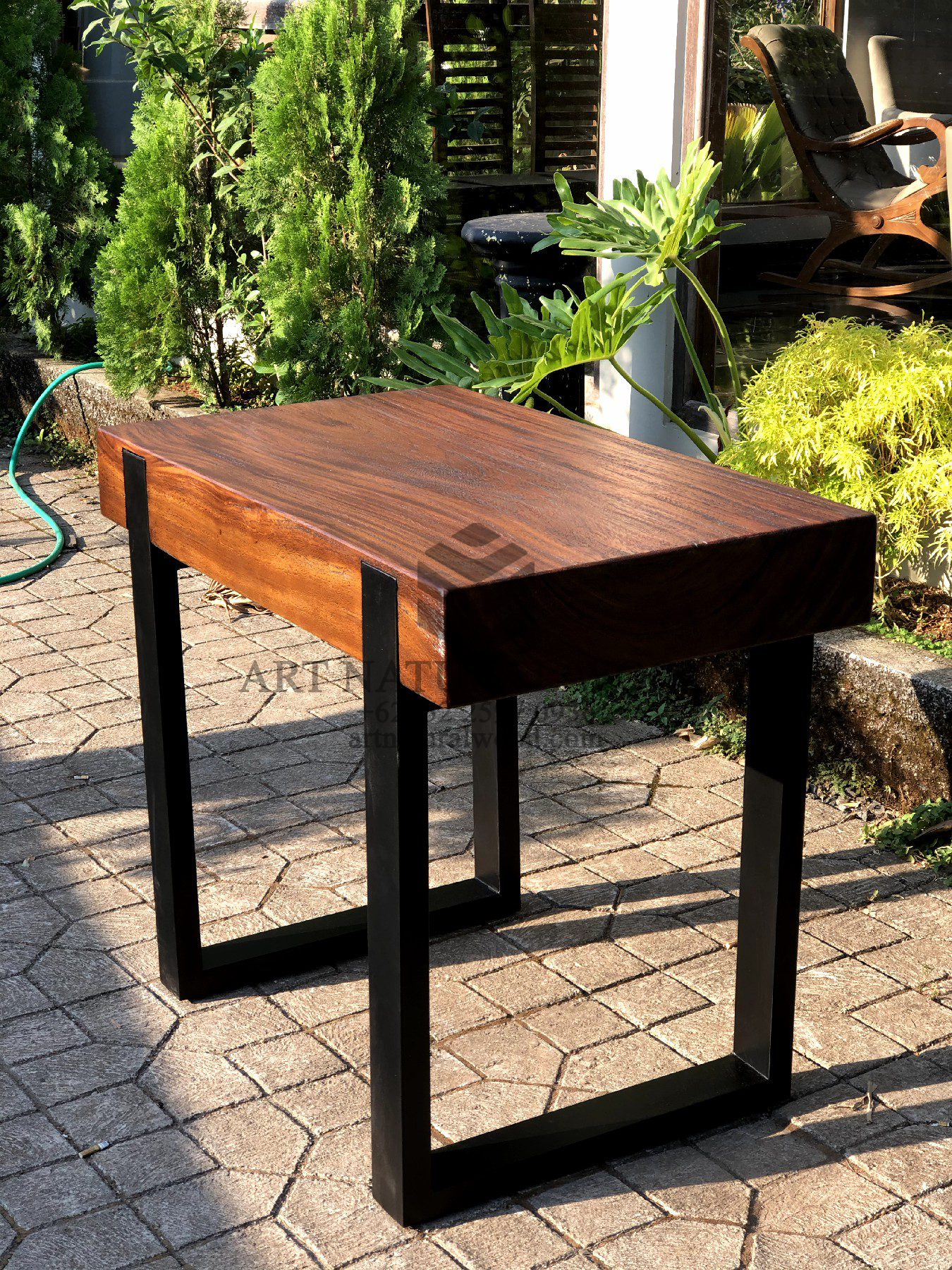 Dengan desain yang simpel dan unik, meja konsul industrial ini memiliki nilai estetik tersendiri, kemudian dengan menggunakan bahan baku berupa full kayu solid membuat meja konsul industrial ini memiliki daya tarik tambahan dan tentunya memiliki kekuatan yang tidak diragukan lagi, dengan kata lain furniture memiliki kualitas yang sangat baik. Tentunya meja bar ini dapat bertahan dalam waktu yang lama. Mengedepankan desain natural, furniture ini tetap mempertahankan lekuk alami dari kayu. Dan ditambah dengan kombinasi kaki-kaki besi membuat furniture ini bergaya industrial.