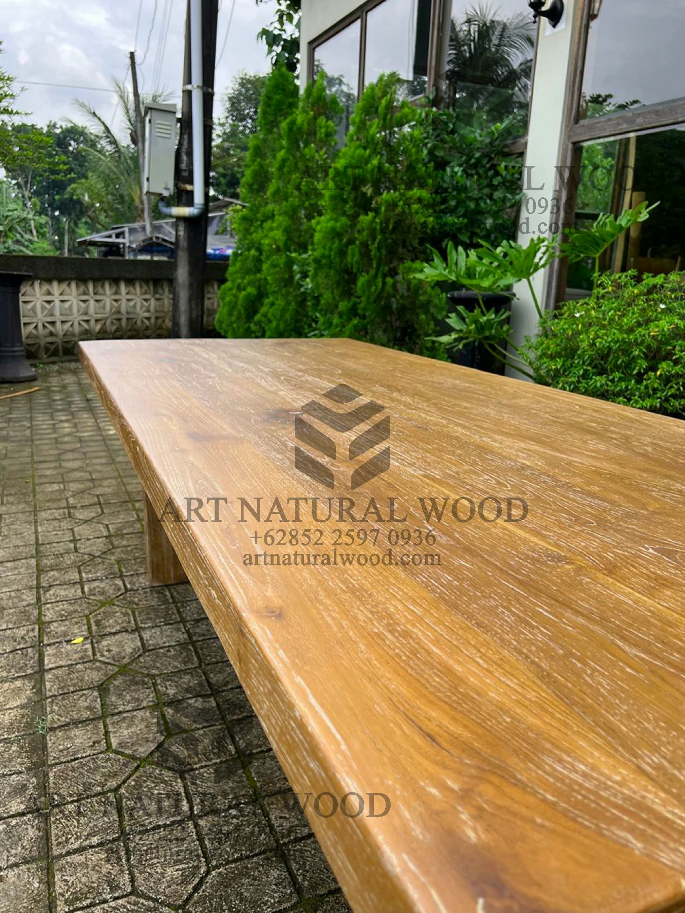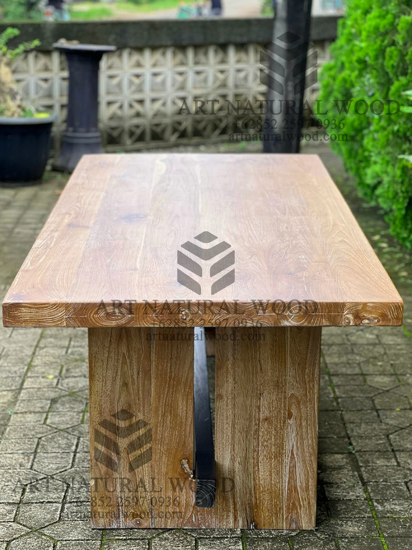 Meja kayu jati rustic ini menggunakan bahan baku Kayu Jati solid (Solid Teak Wood) dan ditambah dengan konstruksi/purus. Produk-produk dari Art Natural Wood dekerjakan oleh para profesional dibidang furniture dari Jepara. Dikerjakan dengan teliti dan cermat sehingga furniture ini menjadi produk yang kokoh, kuat dan memiliki fungsi guna.
