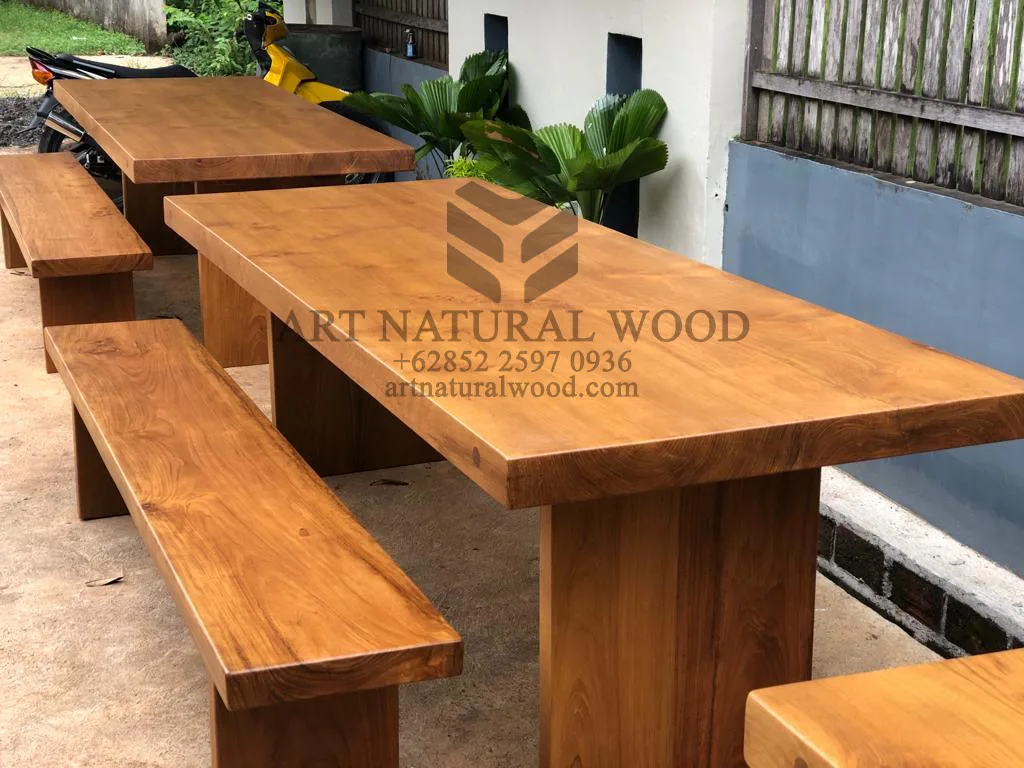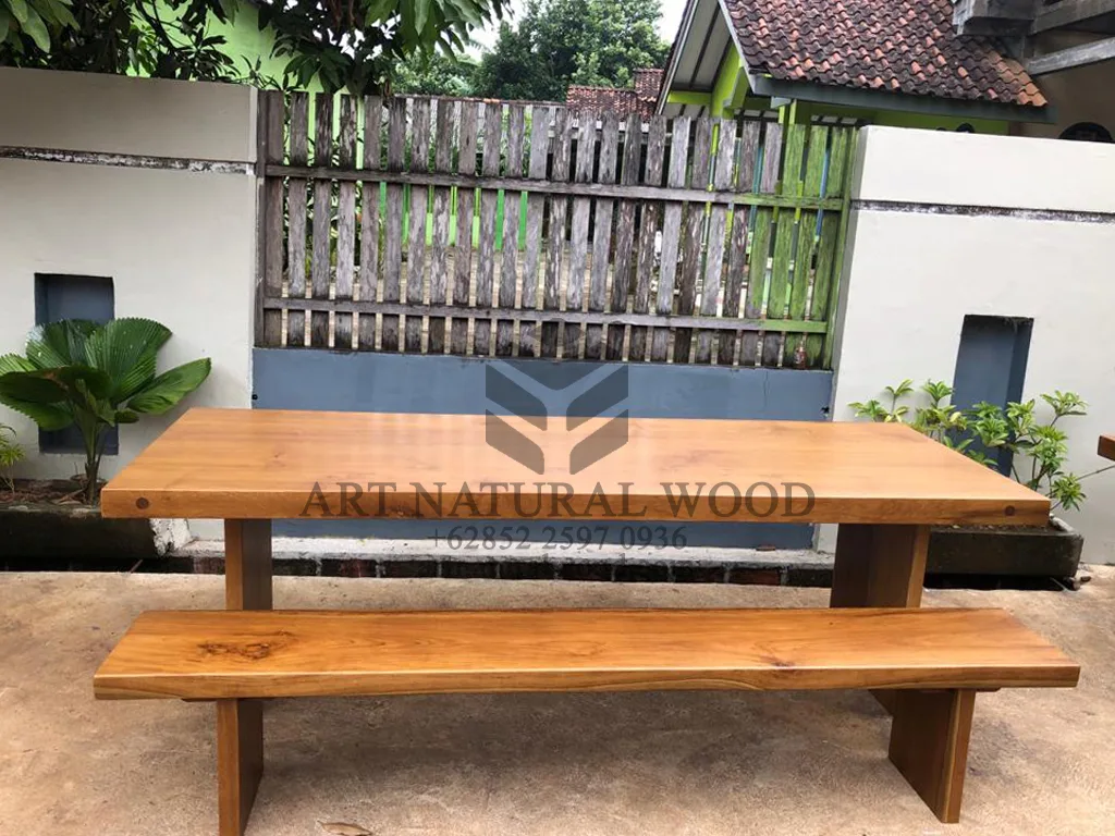 Meja kayu jati solid ini menggunakan bahan baku Kayu Jati utuh (Teak Wood) dan ditambah dengan konstruksi/purus. Produk-produk dari Art Natural Wood dekerjakan oleh para profesional dibidang furniture dari Jepara. Dikerjakan dengan teliti dan cermat sehingga furniture ini menjadi produk yang kokoh, kuat dan memiliki fungsi guna.