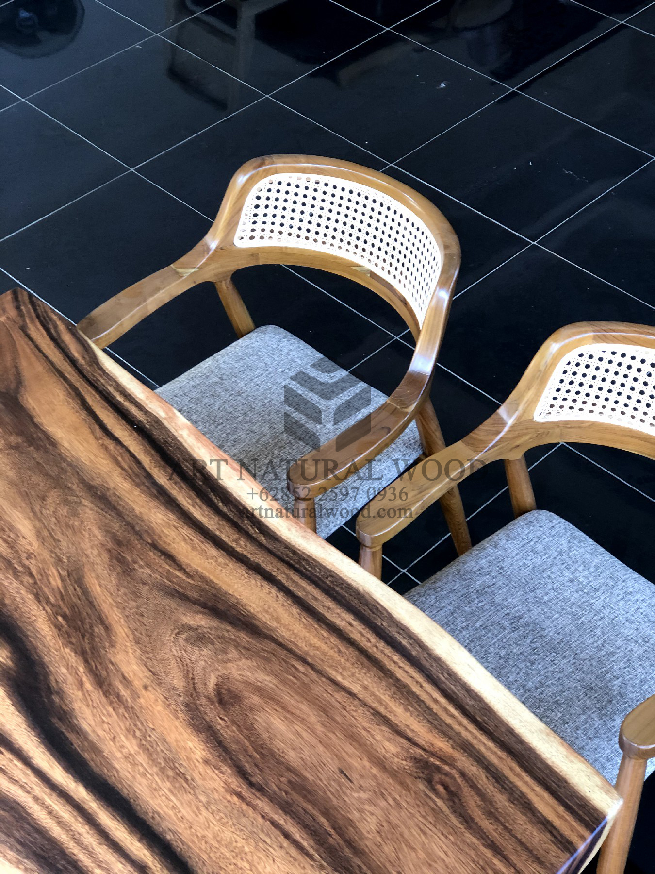 Pertama kami sampaikan bahwa Art Natural Wood melayani custom finishing untuk para konsumen sehingga konsumen berhak menentukan warna finishing produk yang dikehendaki. Untuk produk ini kami menggunakan finishing natural. Finishing natural sangat cocok bila dipadankan dengan produk-produk yang terbuat dari kayu trembesi solid (Suar Wood), Karena tidak menghilangkan kesan atau motif urat kayu.