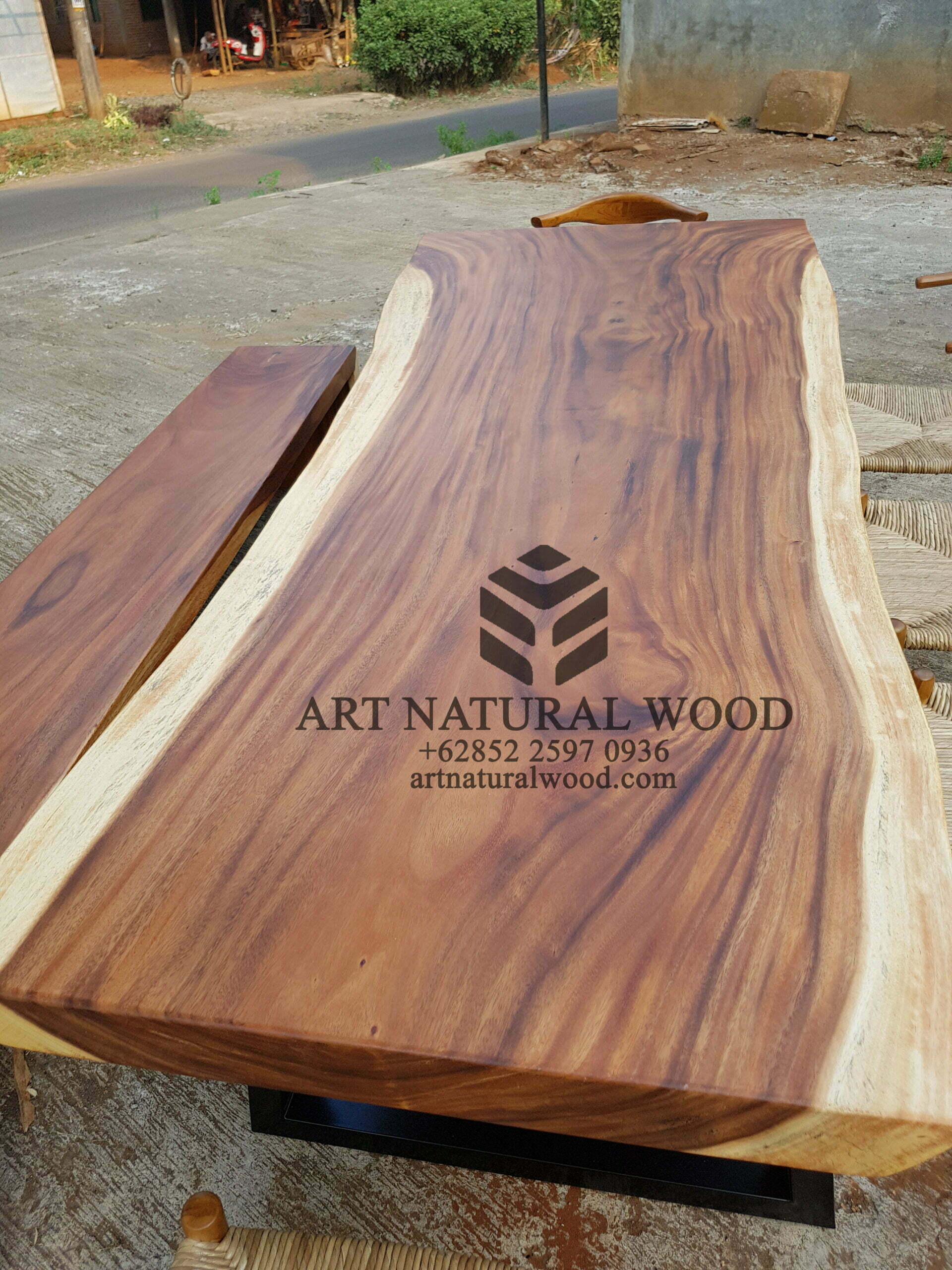 Pertama kami sampaikan bahwa Art Natural Wood melayani custom finishing untuk para konsumen, sehingga konsumen berhak menentukan warna finishing produk yang dikehendaki. Untuk produk ini kami menggunakan finishing natural. Finishing natural sangat cocok bila dipadankan dengan produk-produk yang terbuat dari kayu trembesi solid (Suar Wood), Karena tidak menghilangkan kesan atau motif urat kayu.