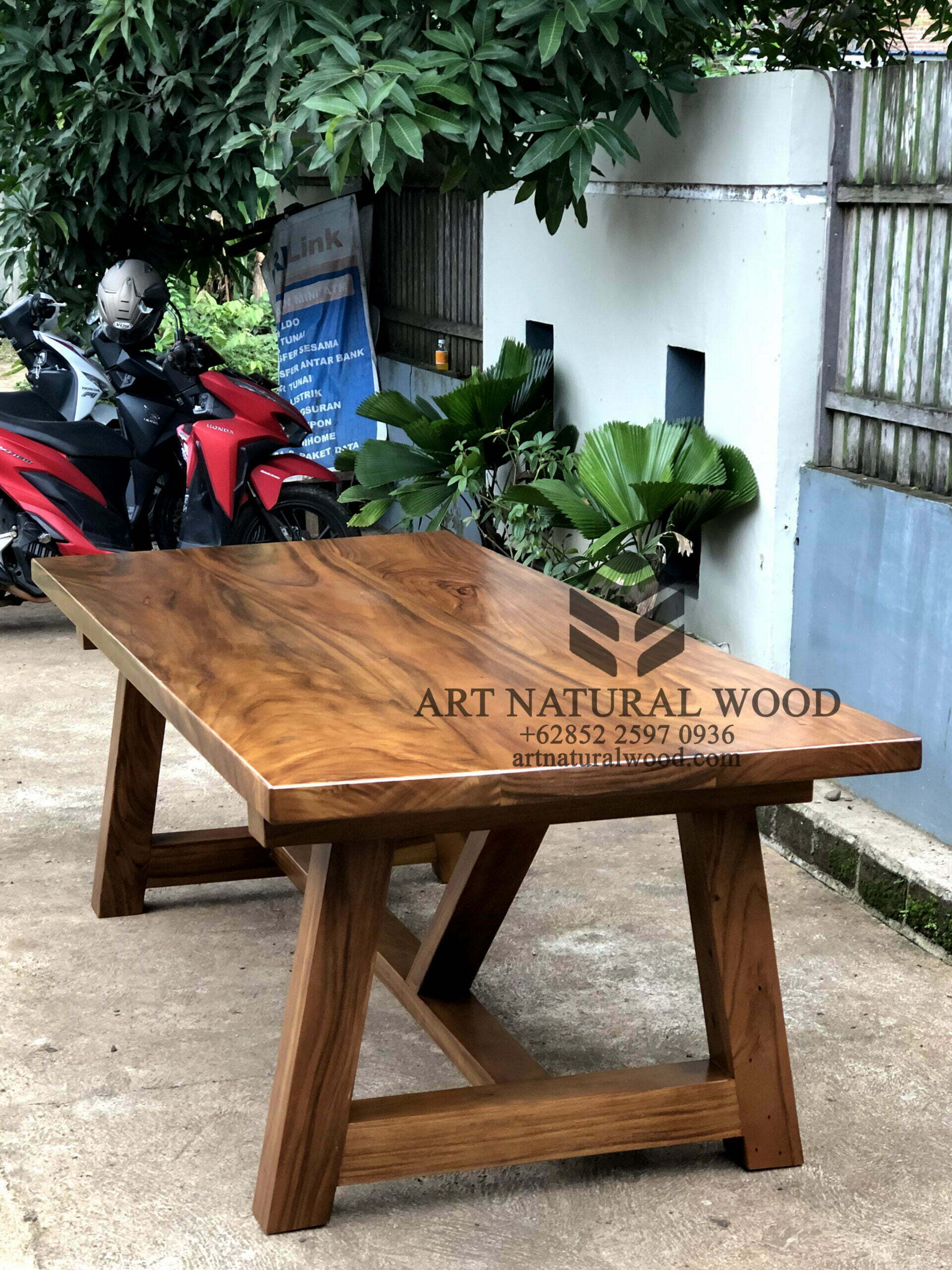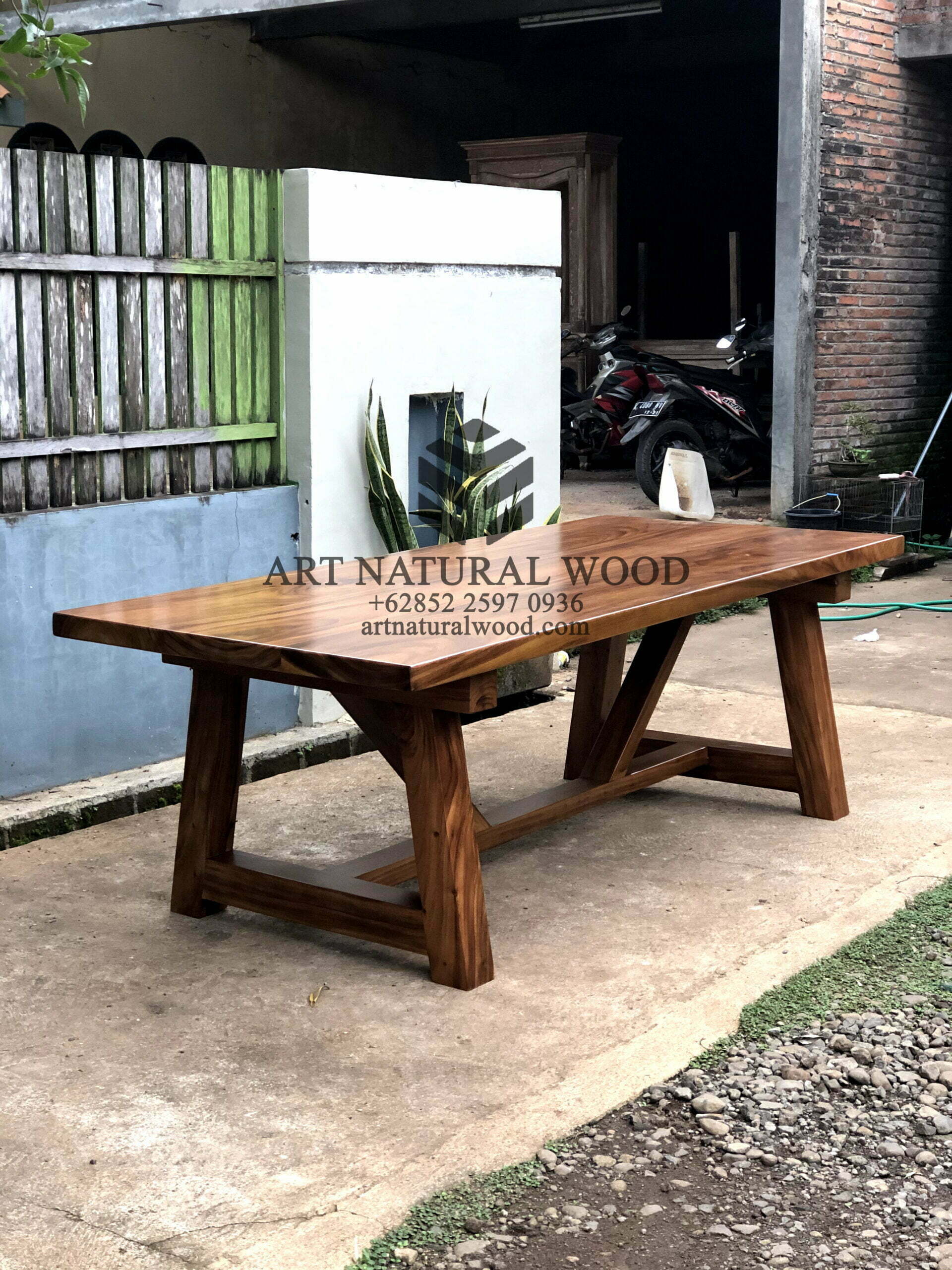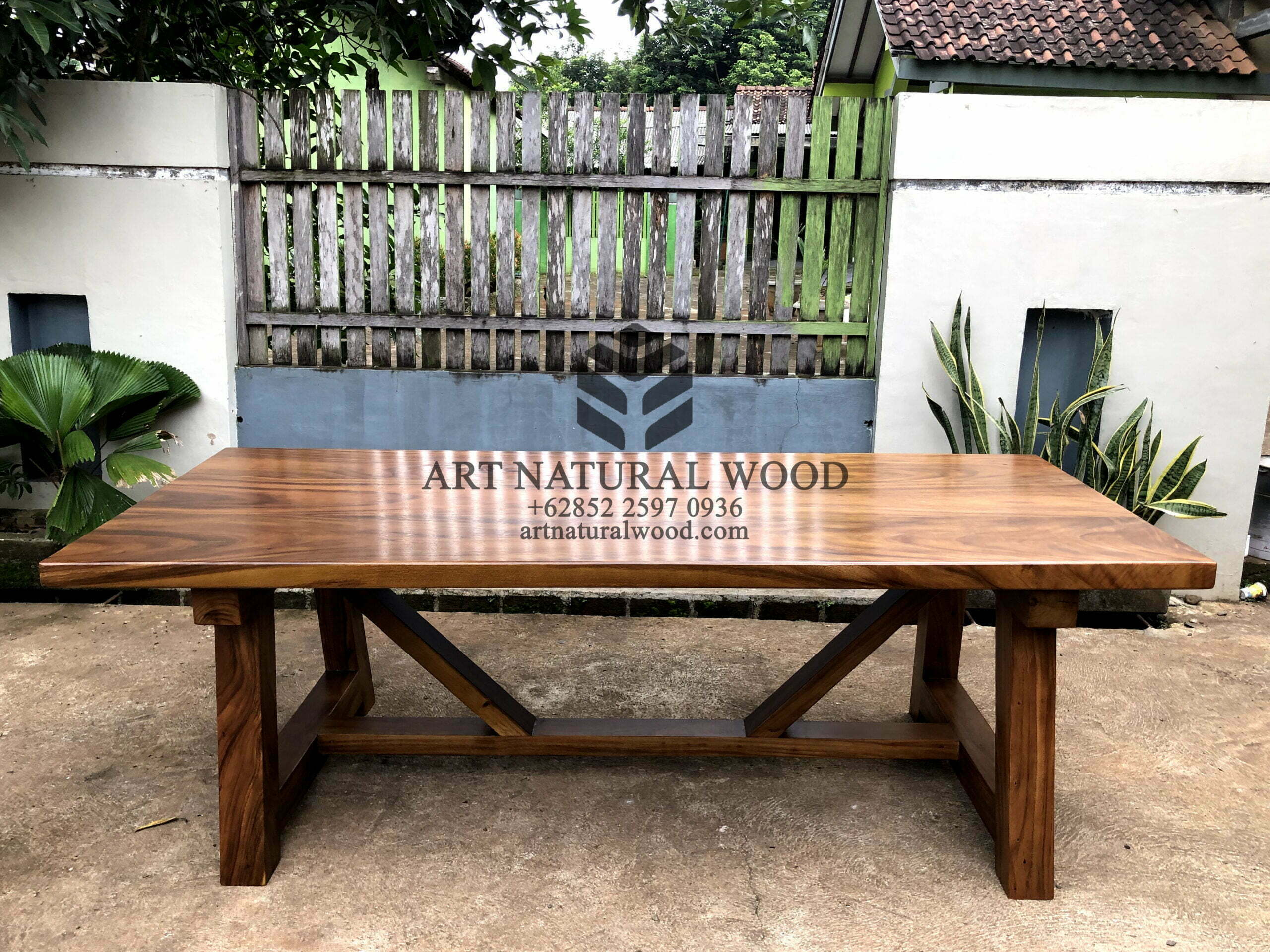 Meja makan kayu alami ini menggunakan bahan baku Kayu Trembesi utuh (Suar Wood) dan ditambah dengan konstruksi/purus. Produk-produk dari Art Natural Wood dekerjakan oleh para profesional dibidang furniture dari Jepara. Dikerjakan dengan teliti dan cermat sehingga furniture ini menjadi produk yang kokoh, kuat dan memiliki fungsi guna.