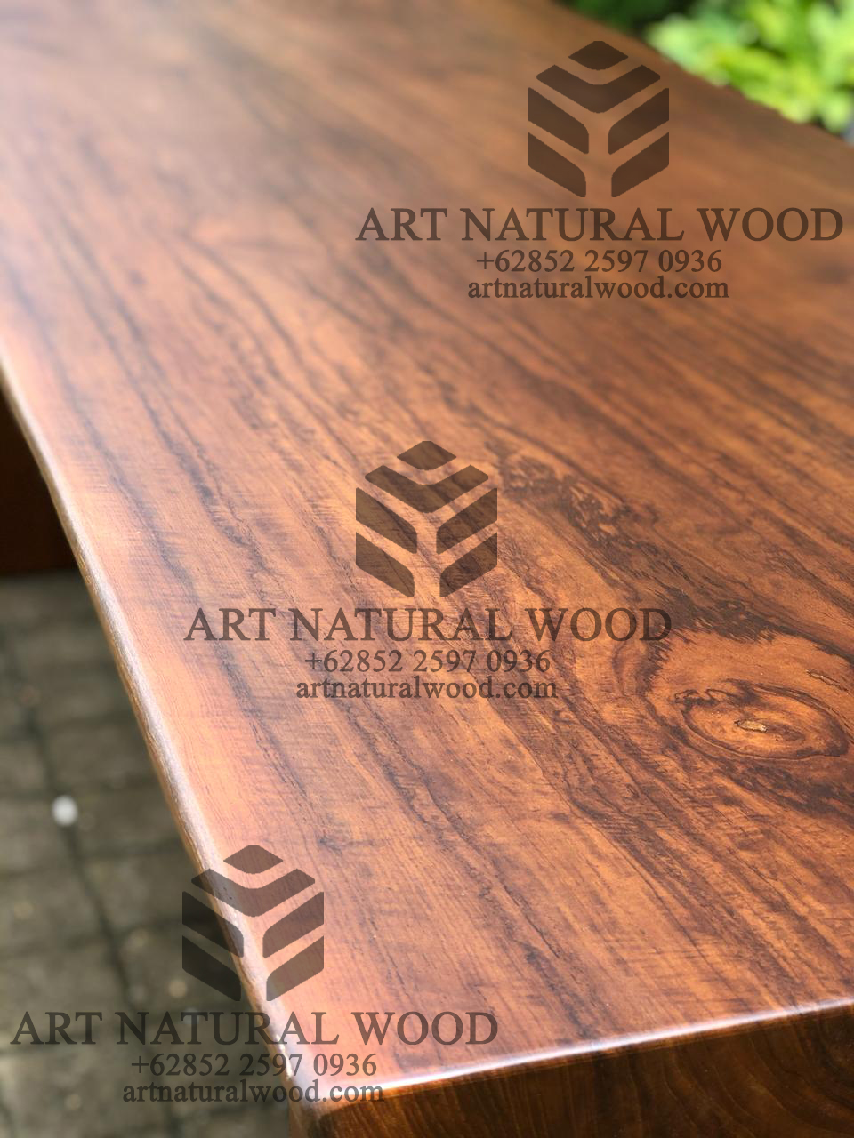 Pertama kami sampaikan bahwa Art Natural Wood melayani custom finishing untuk para konsumen, sehingga konsumen berhak menentukan warna finishing produk yang dikehendaki. Untuk produk ini kami menggunakan finishing natural. Finishing natural sangat cocok bila dipadankan dengan produk-produk yang terbuat dari kayu jati solid (Teak Wood), Karena tidak menghilangkan kesan atau motif urat kayu.