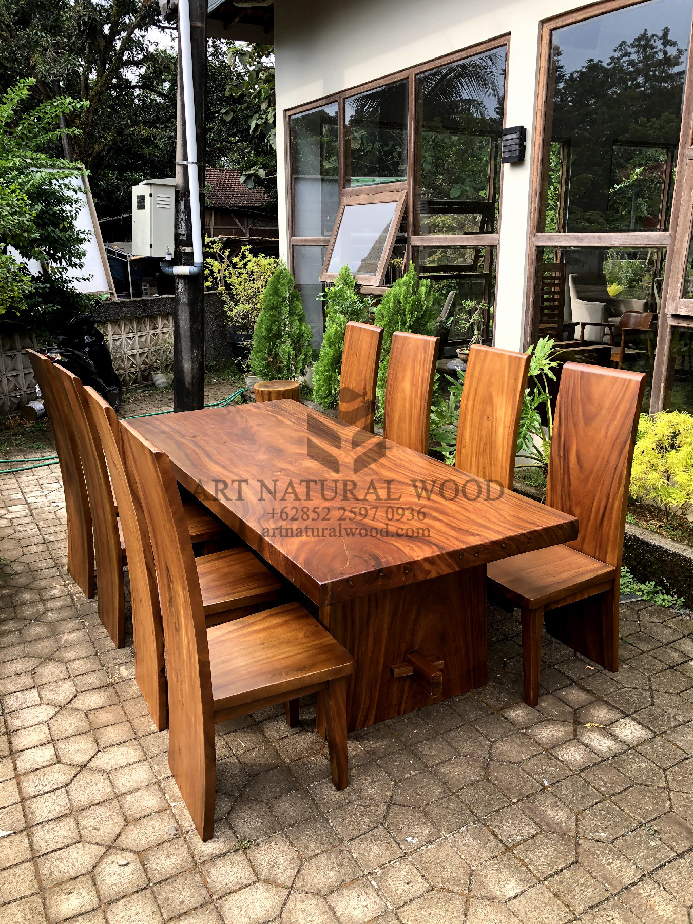 MEJA MAKAN KAYU TREMBESI SOLID 6 KURSI
