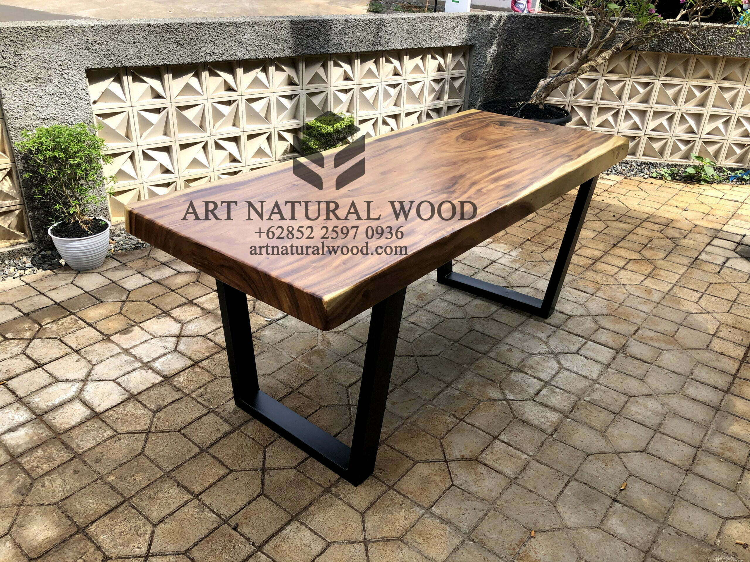 Meja makan kayu trembesi ini menggunakan bahan baku Kayu Trembesi utuh (Suar Wood) dan ditambah dengan konstruksi/purus. Produk-produk dari Art Natural Wood dekerjakan oleh para profesional dibidang furniture dari Jepara. Dikerjakan dengan teliti dan cermat sehingga furniture ini menjadi produk yang kokoh, kuat dan memiliki fungsi guna.