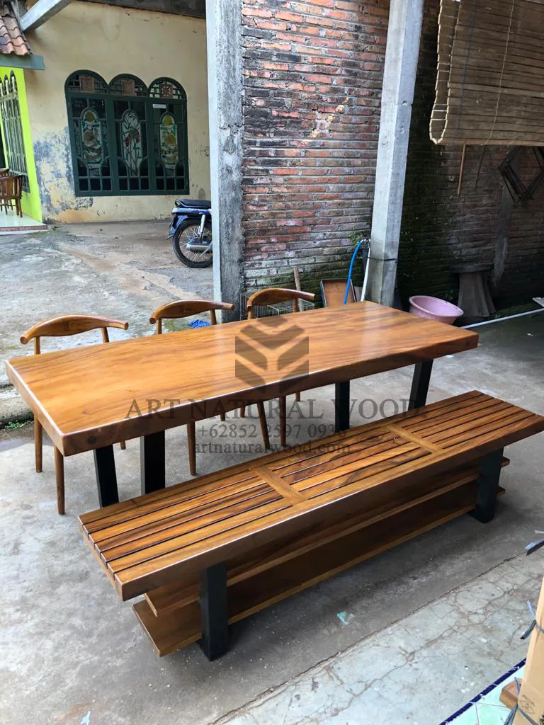 Meja Makan Solid Kayu Trembesi Utuh