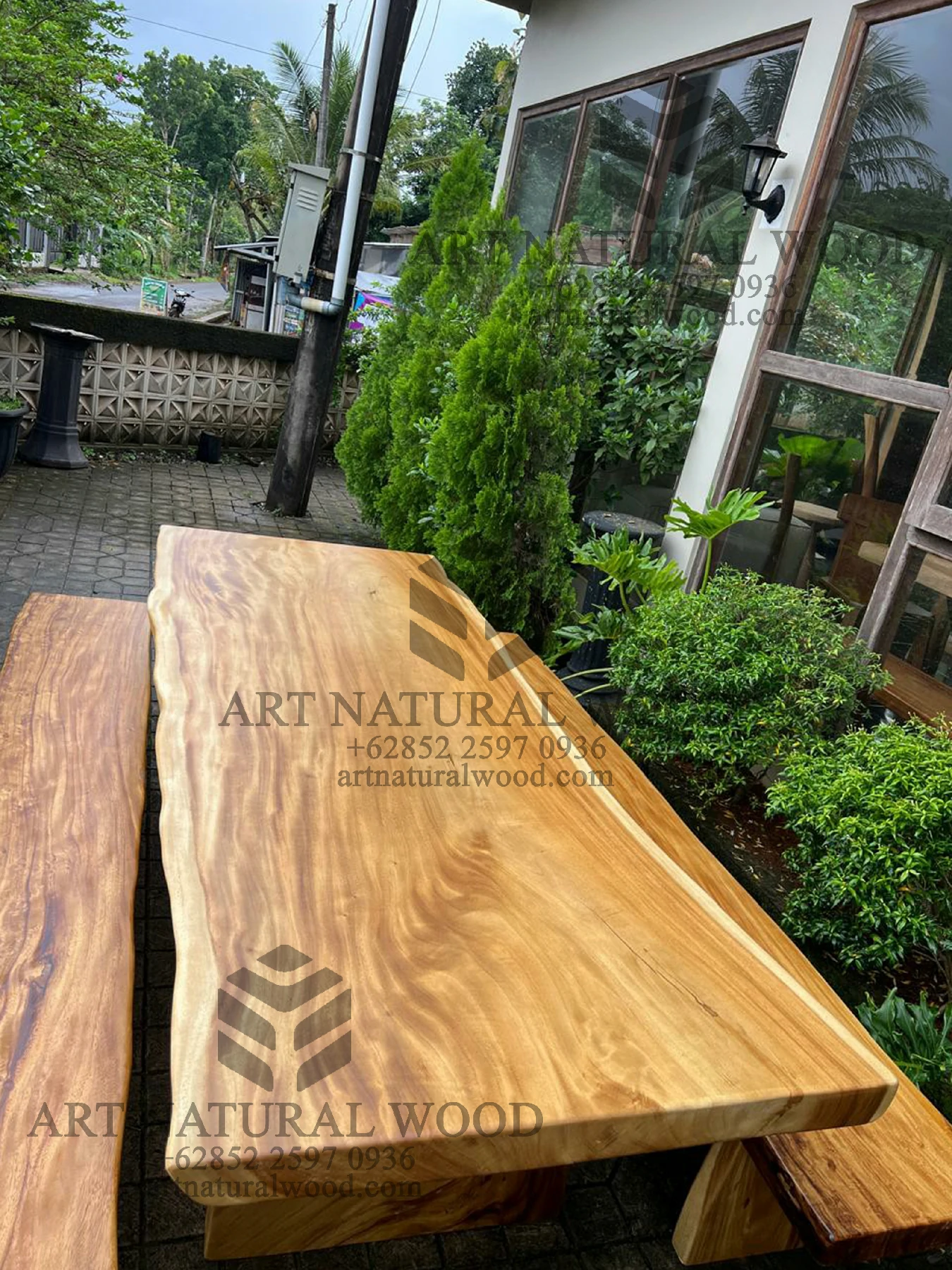 Trembesi terkenal sebagai jenis kayu keras dengan karakter serat besar dan warna kontras yang menawan. Tidak hanya estetis, trembesi juga memiliki kekuatan struktural yang tinggi, menjadikannya pilihan ideal untuk meja makan keluarga maupun keperluan komersial seperti cafe, resto, hingga villa.