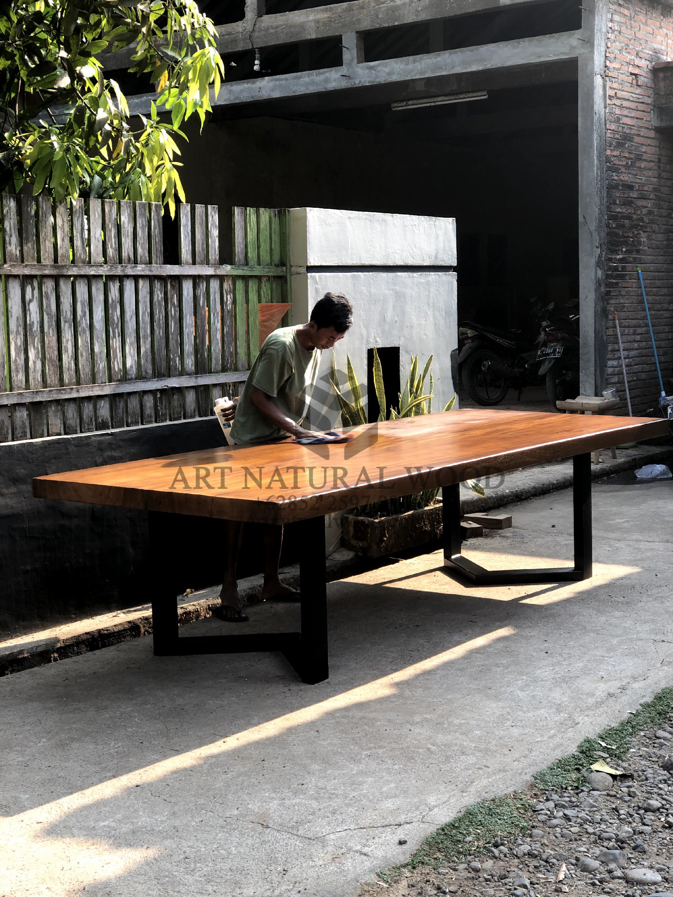 Meja meeting minimalis kayu trembesi ini menggunakan bahan baku Kayu Trembesi utuh (Suar Wood) dan ditambah dengan konstruksi/purus. Produk-produk dari Art Natural Wood dekerjakan oleh para profesional dibidang furniture dari Jepara. Dikerjakan dengan teliti dan cermat sehingga furniture ini menjadi produk yang kokoh, kuat dan memiliki fungsi guna.