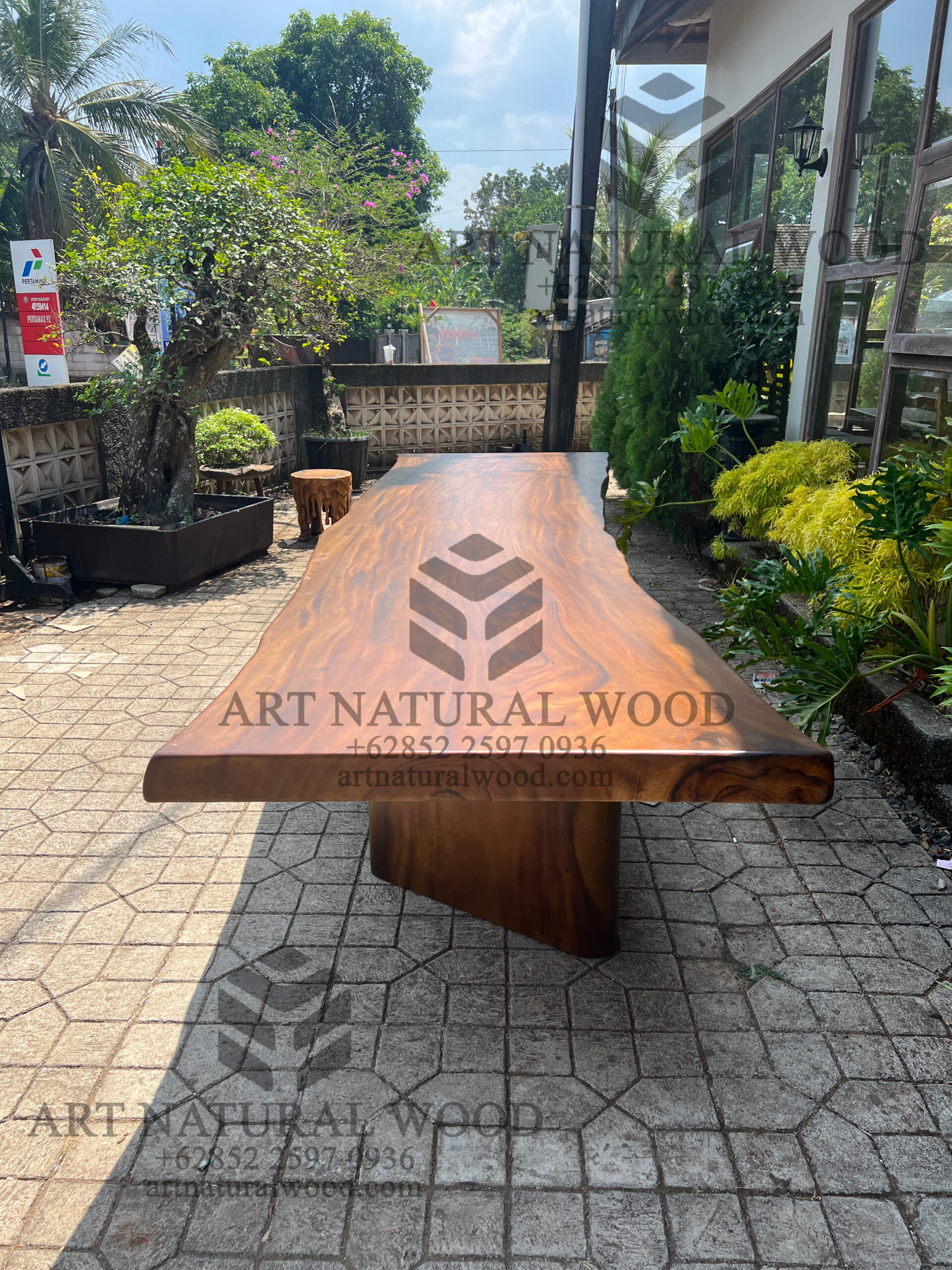 Meja rapat kantor ini menggunakan bahan baku Kayu Trembesi utuh (Suar Wood) dan ditambah dengan konstruksi/purus. Produk-produk dari Art Natural Wood dekerjakan oleh para profesional dibidang furniture dari Jepara. Dikerjakan dengan teliti dan cermat sehingga furniture ini menjadi produk yang kokoh, kuat dan memiliki fungsi guna.