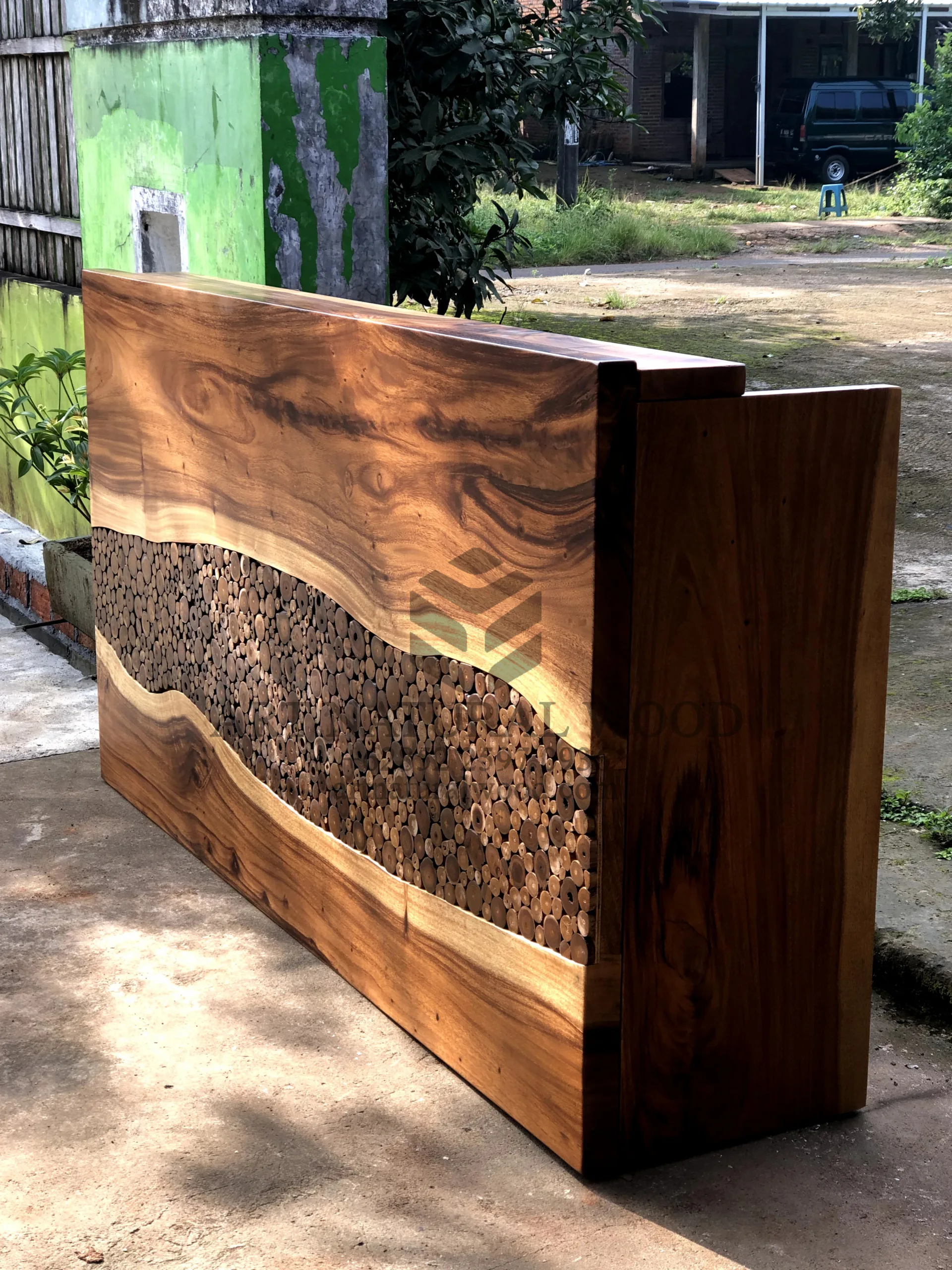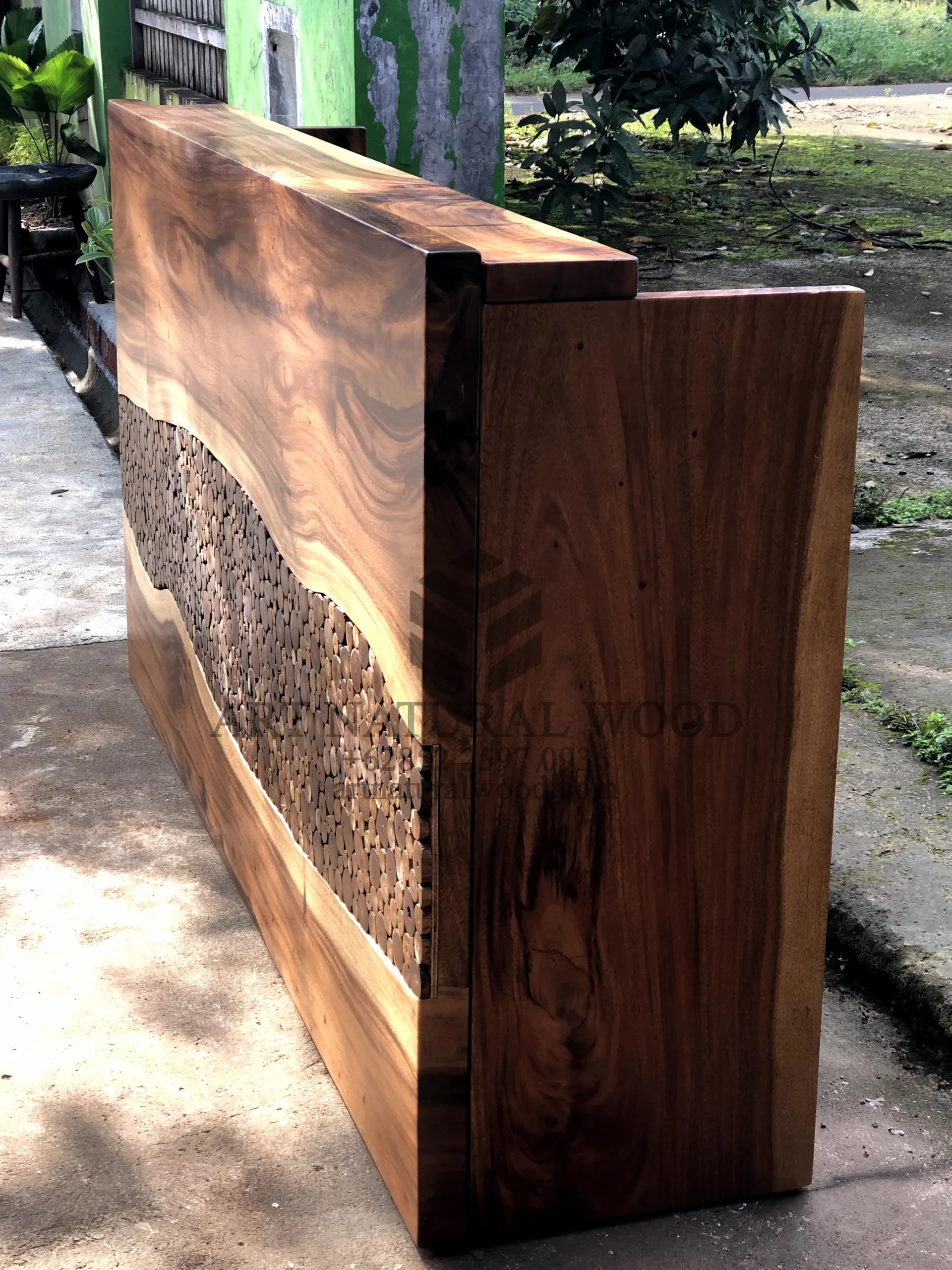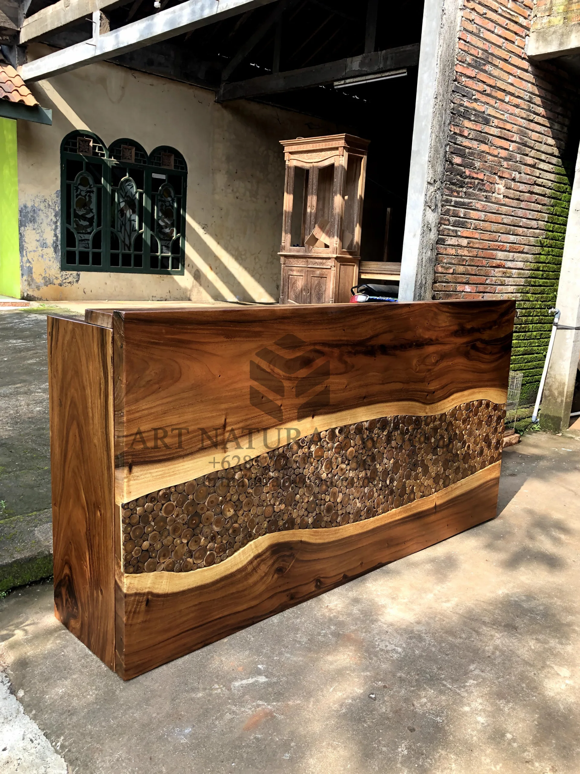 Meja resepsionis kantor kayu trembesi solid ini menggunakan bahan baku Kayu Trembesi utuh (Suar Wood) dan ditambah dengan konstruksi/purus. Produk-produk dari Art Natural Wood dekerjakan oleh para profesional dibidang furniture dari Jepara. Dikerjakan dengan teliti dan cermat sehingga produk ini menjadi produk yang kokoh, kuat dan memiliki fungsi guna.
