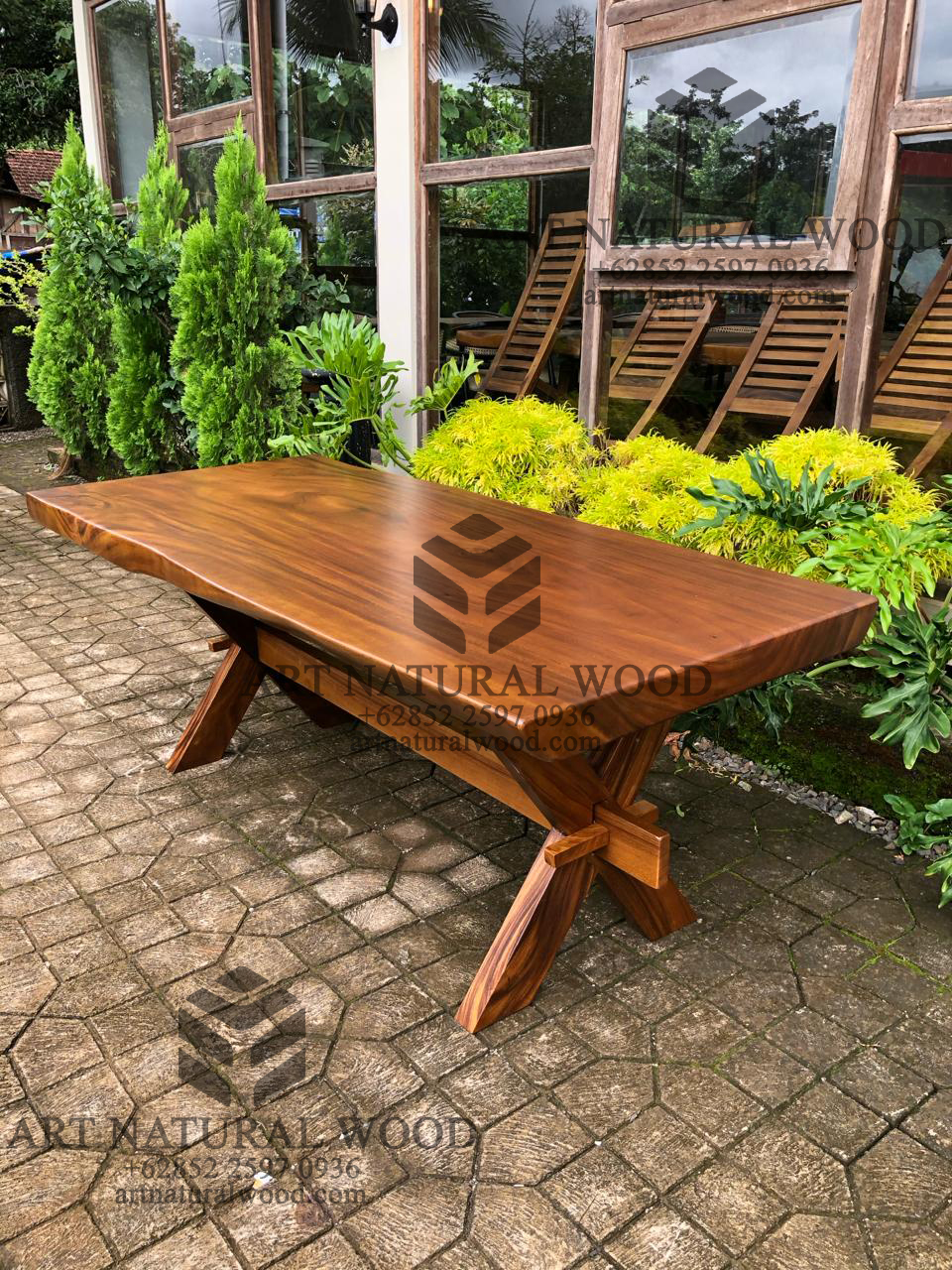 MEJA SOLID TREMBESI KAKI SILANG